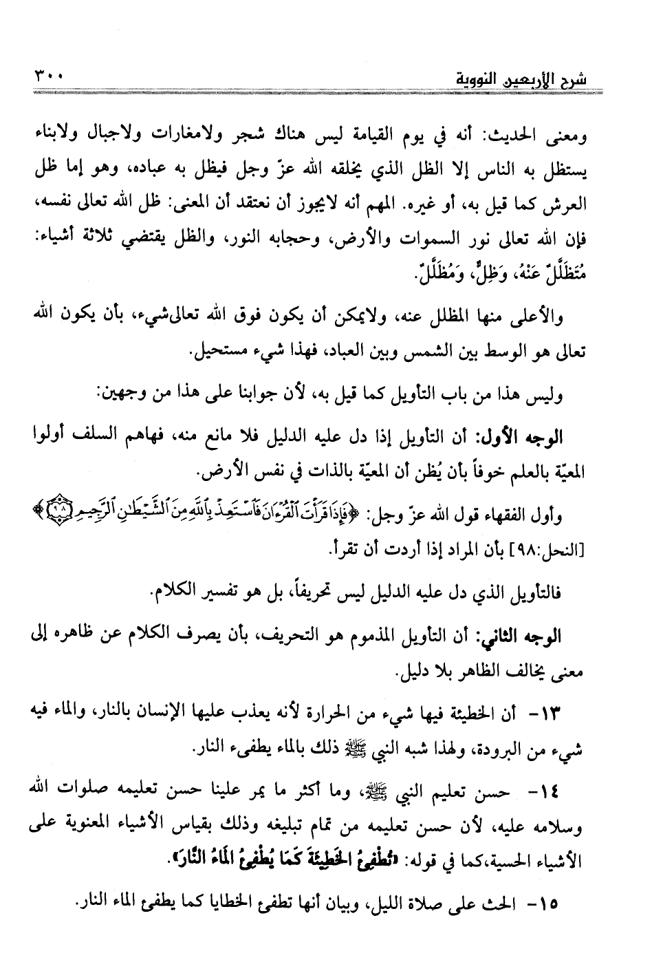 . 13 أن الخطيئة فيها شيء من الحرارة لأنه يعذب عليها الإنسان بالنار، والماء فيه شيء من البرودة، ولهذا شبه النبي صلى الله عليه وسلم ذلك بالماء يطفىء النار.