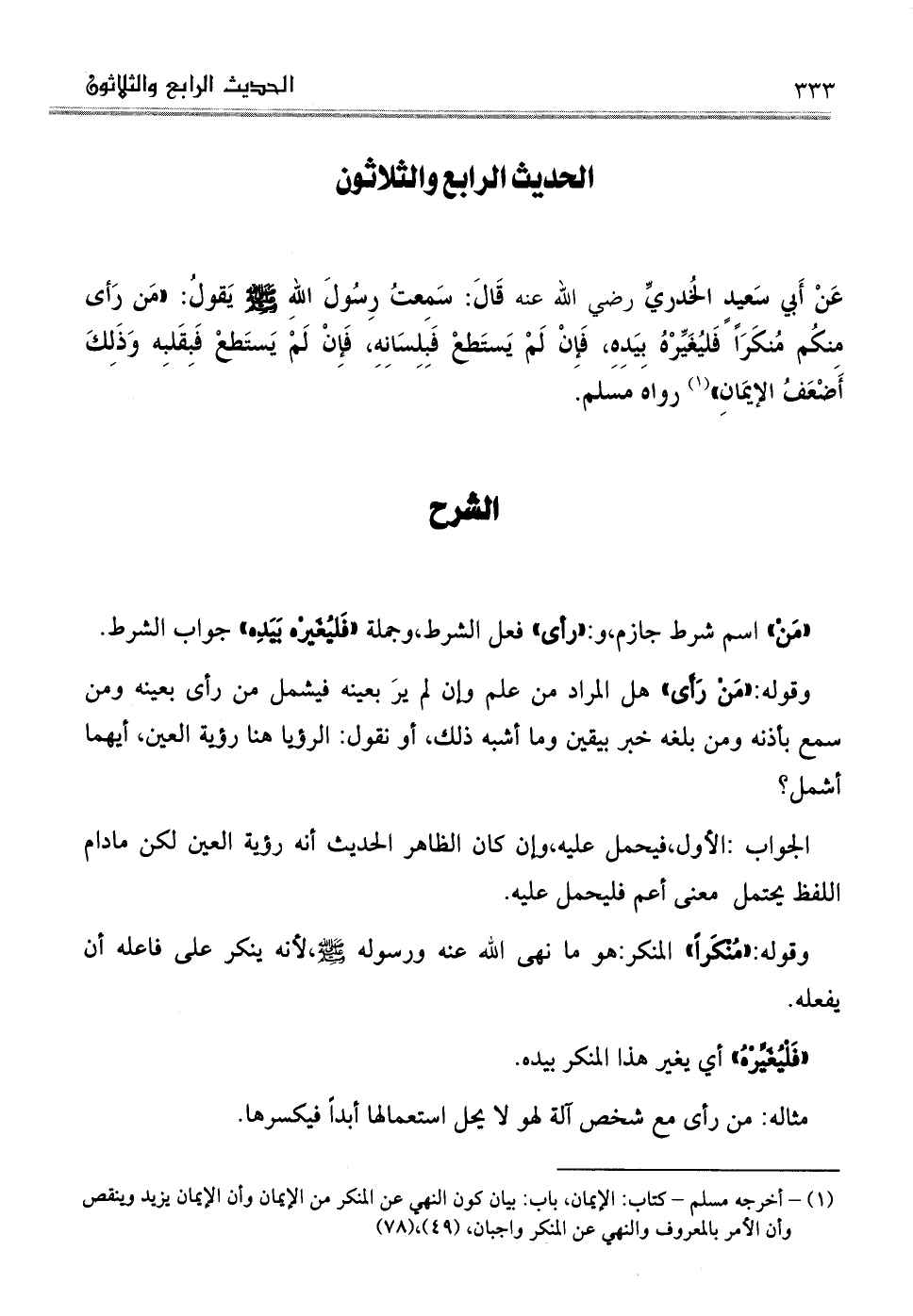(¬1) اخرجه مسلم- كتاب: الإيمان، باب: بيان كون النهي عن المنكر من الإيمان وأن الإيمان يزيد وينقص وأن الامر بالمعروف والنهي عن المنكر واجبان، (49) ، (78)