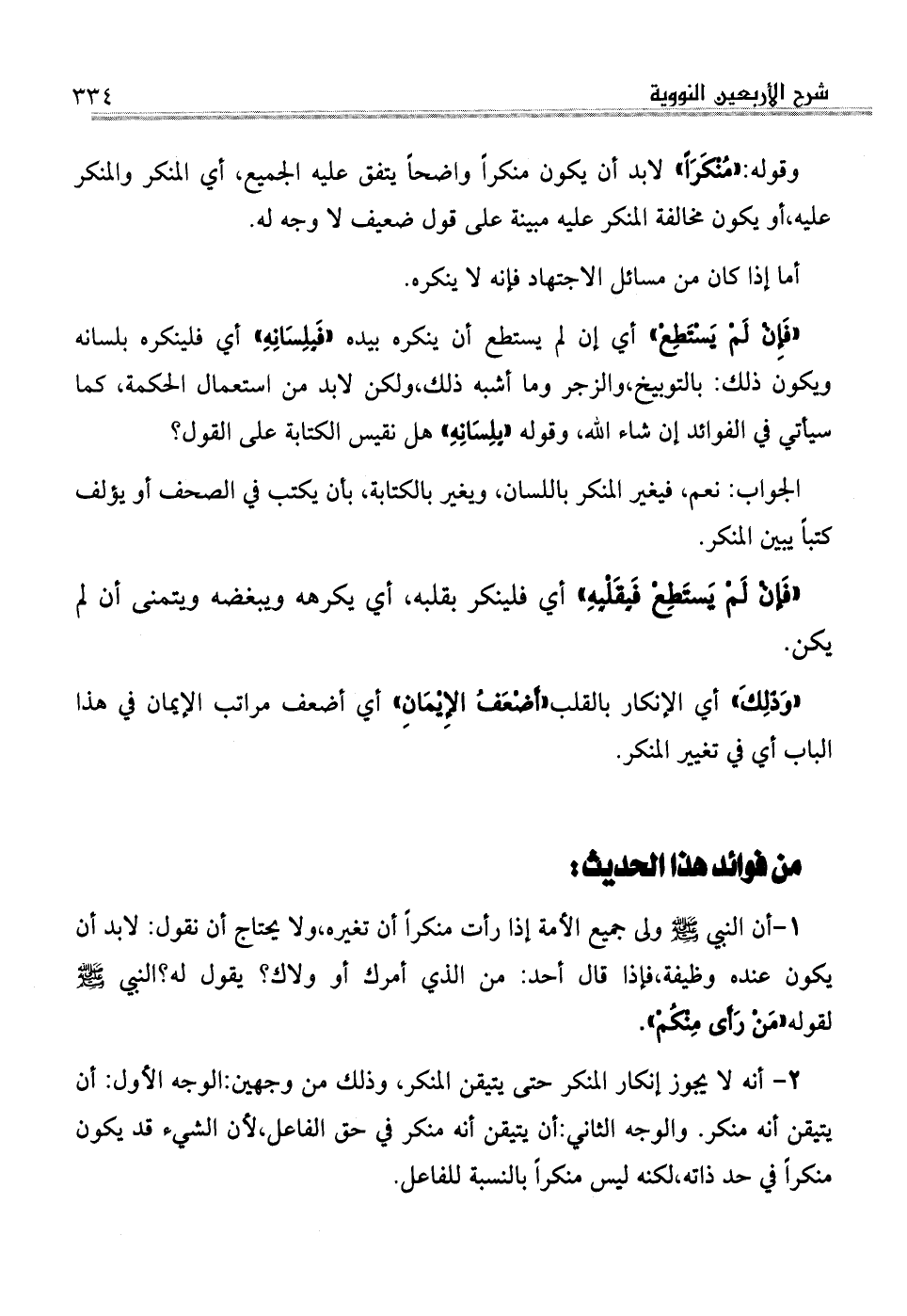 . 2أنه لا يجوز إنكار المنكر حتى يتيقن المنكر، وذلك من وجهين: الوجه الأول: أن يتيقن أنه منكر. والوجه الثاني: أن يتيقن أنه منكر في حق الفاعل، لأن الشيء قد يكون منكراً في حد ذاته، لكنه ليس منكراً بالنسبة للفاعل.
