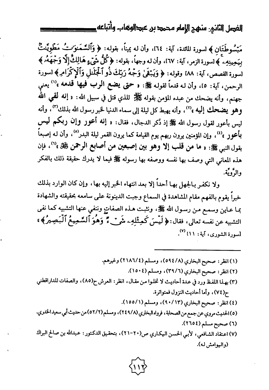 ولا نكفر بالجهل بها أحدًا إلا بعد انتهاء الخبر إليه بها، وإن كان الوارد بذلك خبرًا يقوم بالفهم مقام المشاهدة في السماع وجبت الدينونة على سامعه بحقيقته والشهادة بما عاين وسمع من رسول الله صلى الله عليه وسلم، ونثبت هذه الصفات وننفي عنها التشبيه كما نفى التشبيه عن نفسه تعالى، فقال: {لَيْسَ كَمِثْلِهِ شَيْءٌ وَهُوَ السَّمِيعُ الْبَصِيرُ} [الشورى: 11] » [سورة الشورى، آية: 11] (¬7) .