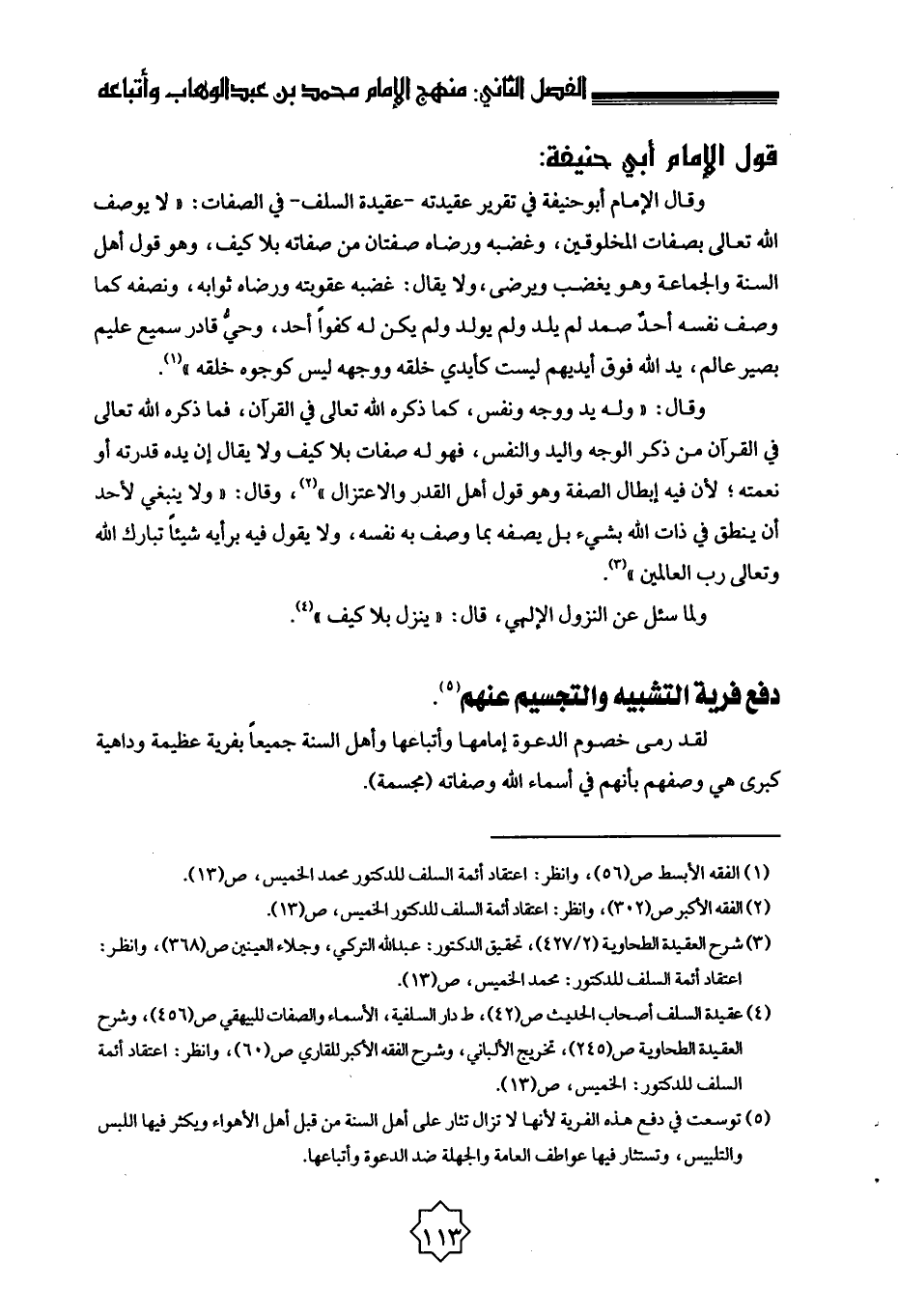 (¬5) توسعت في دفع هذه الفرية لأنها لا تزال تثار على أهل السنة من قبل أهل الأهواء ويكثر فيها اللبس والتلبيس، وتستثار فيها عواطف العامة والجهلة ضد الدعوة وأتباعها.