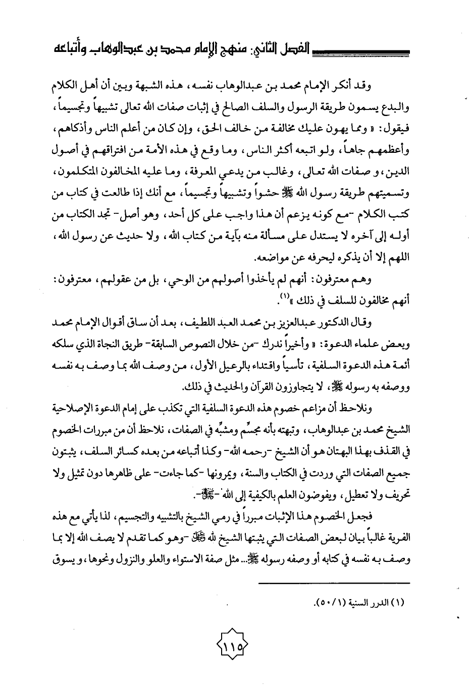 وقال الدكتور عبد العزيز بن محمد العبد اللطيف، بعد أن ساق أقوال الإمام محمد وبعض علماء الدعوة: «وأخيرًا ندرك - من خلال النصوص السابقة - طريق النجاة الذي سلكه أئمة هذه الدعوة السلفية، تأسيًا واقتداء بالرعيل الأول، من وصف الله بما وصف به نفسه ووصفه به رسوله صلى الله عليه وسلم، لا يتجاوزون القرآن والحديث في ذلك.