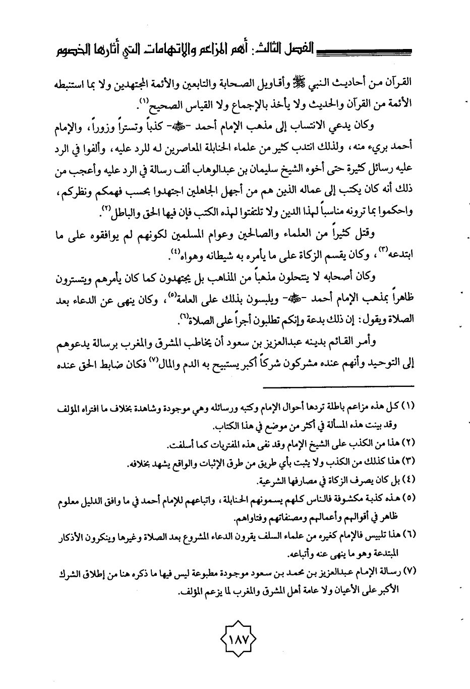 (¬1) كل هذه مزاعم باطلة تردها أحوال الإمام وكتبه ورسائله وهي موجودة وشاهدة بخلاف ما افتراه المؤلف وقد بينت هذه المسألة في أكثر من موضع في هذا الكتاب.