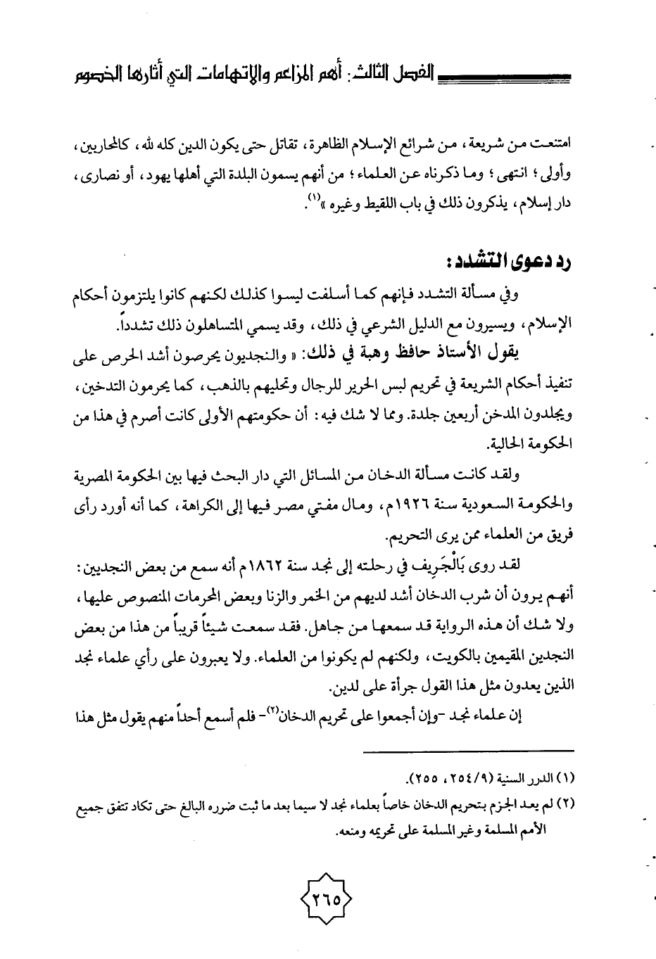 رد دعوى التشدد: وفي مسألة التشدد فإنهم كما أسلفت ليسوا كذلك لكنهم كانوا يلتزمون أحكام الإسلام، ويسيرون مع الدليل الشرعي في ذلك، وقد يسمي المتساهلون ذلك تشدداً.