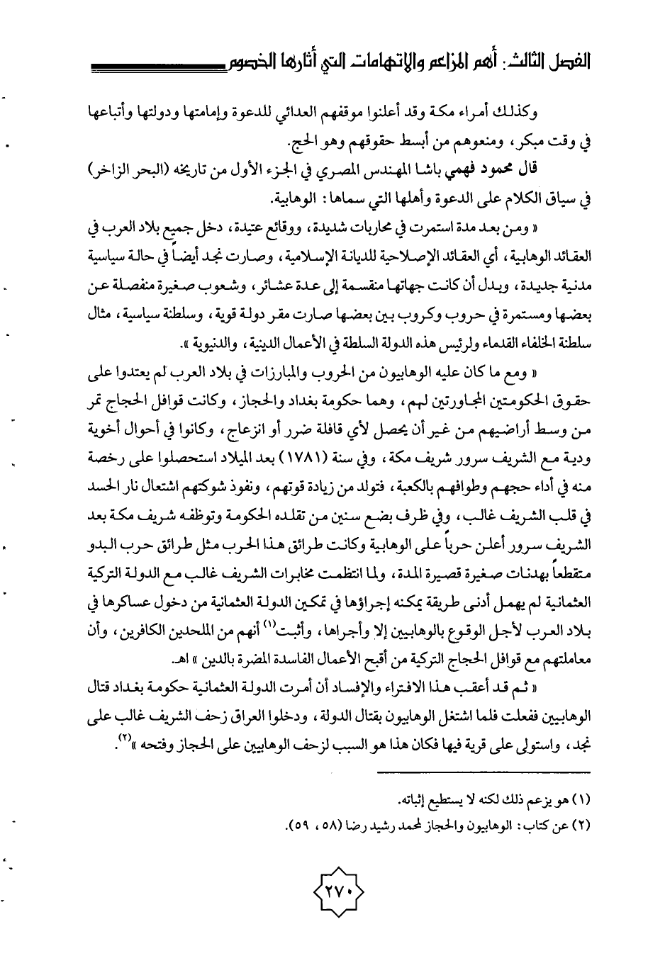 (¬2) عن كتاب: الوهابيون والحجاز لمحمد رشيد رضا (58، 59) .