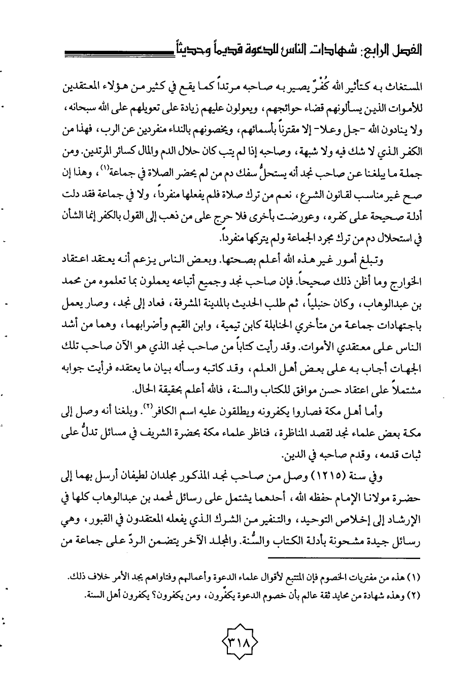 (¬2) وهذه شهادة من محايد ثقة عالم بأن خصوم الدعوة يكفرون، ومن يكفرون؟ يكفرون أهل السنة.