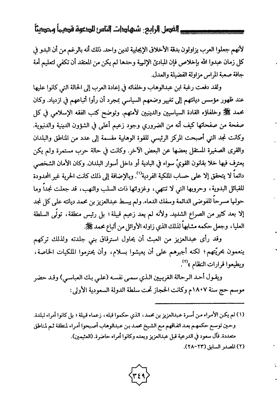 (¬1) لم يكن الأمراء من أسرة عبد العزيز بن محمد الذي حكموا قبله زعماء قبيلة، بل كانوا أمراء لبلدة، وحين توسع حكمهم بعد اتفاقهم مع الشيخ محمد بن عبد الوهاب أصبحوا أمراء لمنطقة ثم لمناطق متعددة، فآل سعود في الدرعية قبل عبد العزيز وبعده، وكانوا أمراء حاضرة. (العثيمين) .