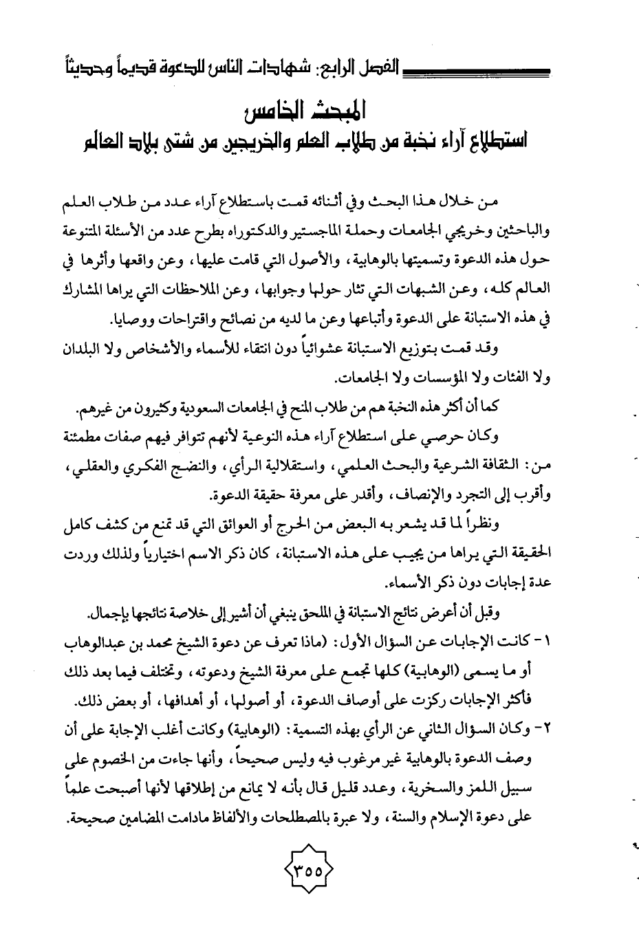 [المبحث الخامس استطلاع آراء نخبة من طلاب العلم والخريجين من شتى بلاد العالم]
