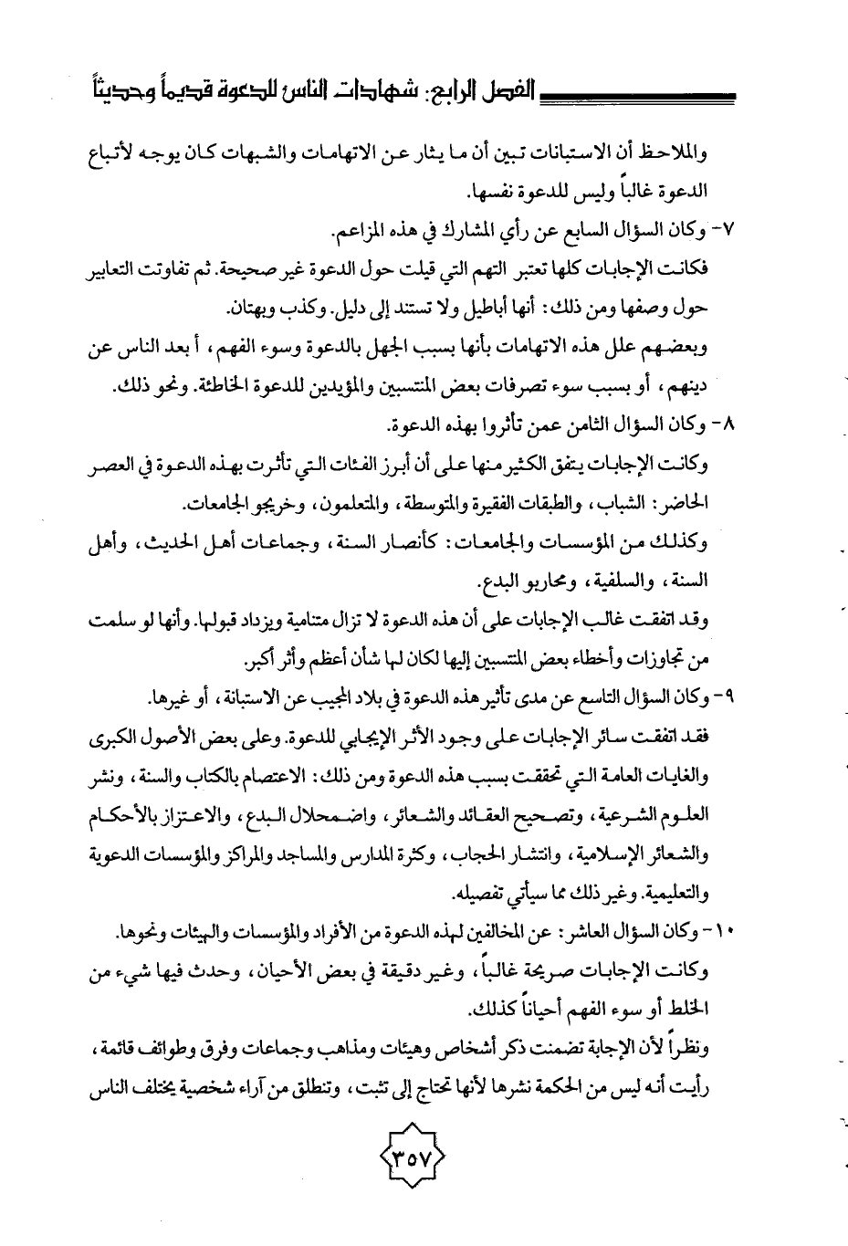 والملاحظ أن الاستبانات تبين أن ما يثار عن الاتهامات والشبهات كان يوجه لأتباع الدعوة غالبا وليس للدعوة نفسها.
