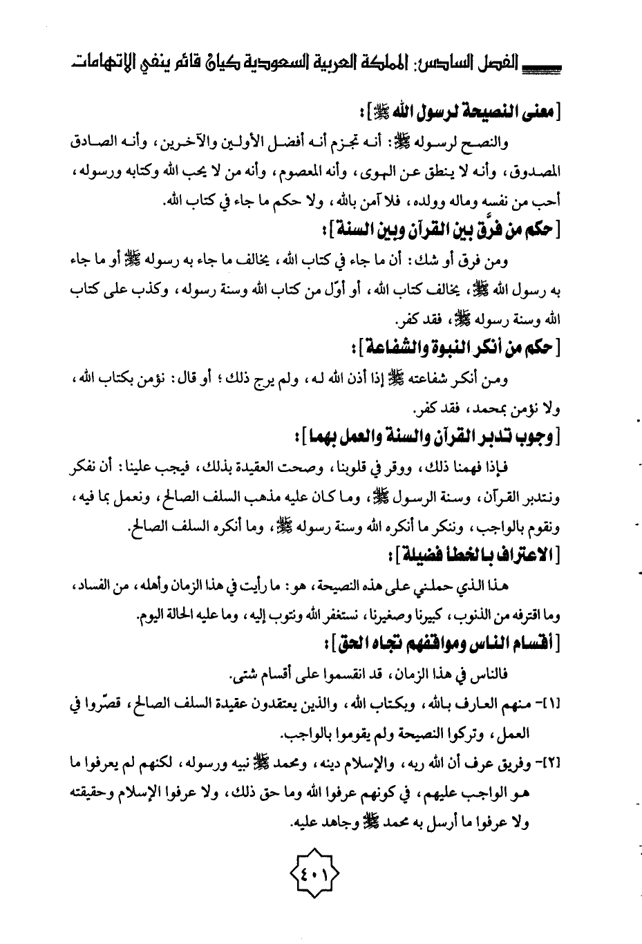 ومن فرق أو شك: أن ما جاء في كتاب الله، يخالف ما جاء به رسوله - صلى الله عليه وسلم - أو ما جاء به رسول الله - صلى الله عليه وسلم -، يخالف كتاب الله، أو أوّل من كتاب الله وسنة رسوله، وكذب على كتاب الله وسنة رسوله - صلى الله عليه وسلم -، فقد كفر.
