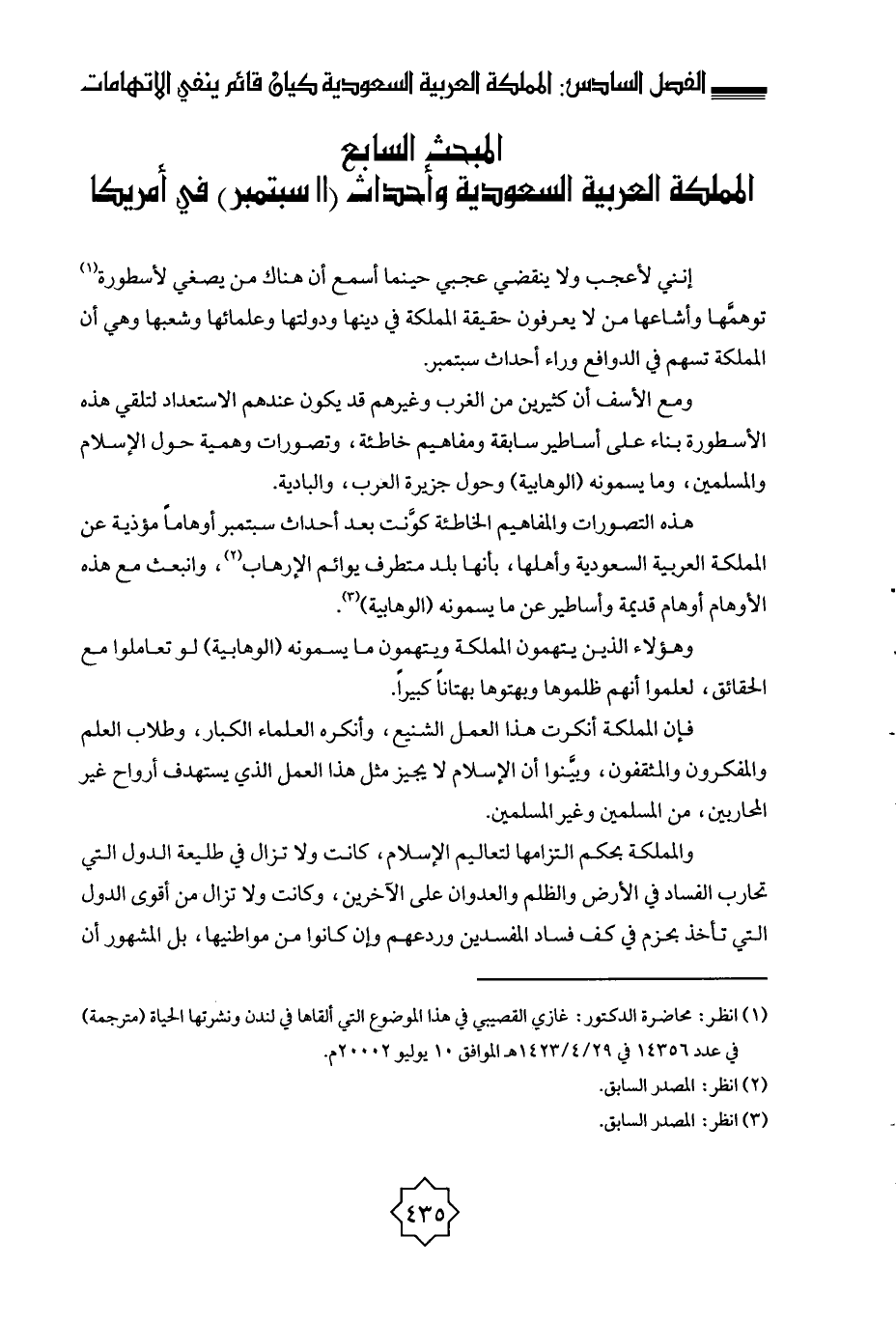 [المبحث السابع المملكة العربية السعودية وأحداث 11 سبتمبر في أمريكا]