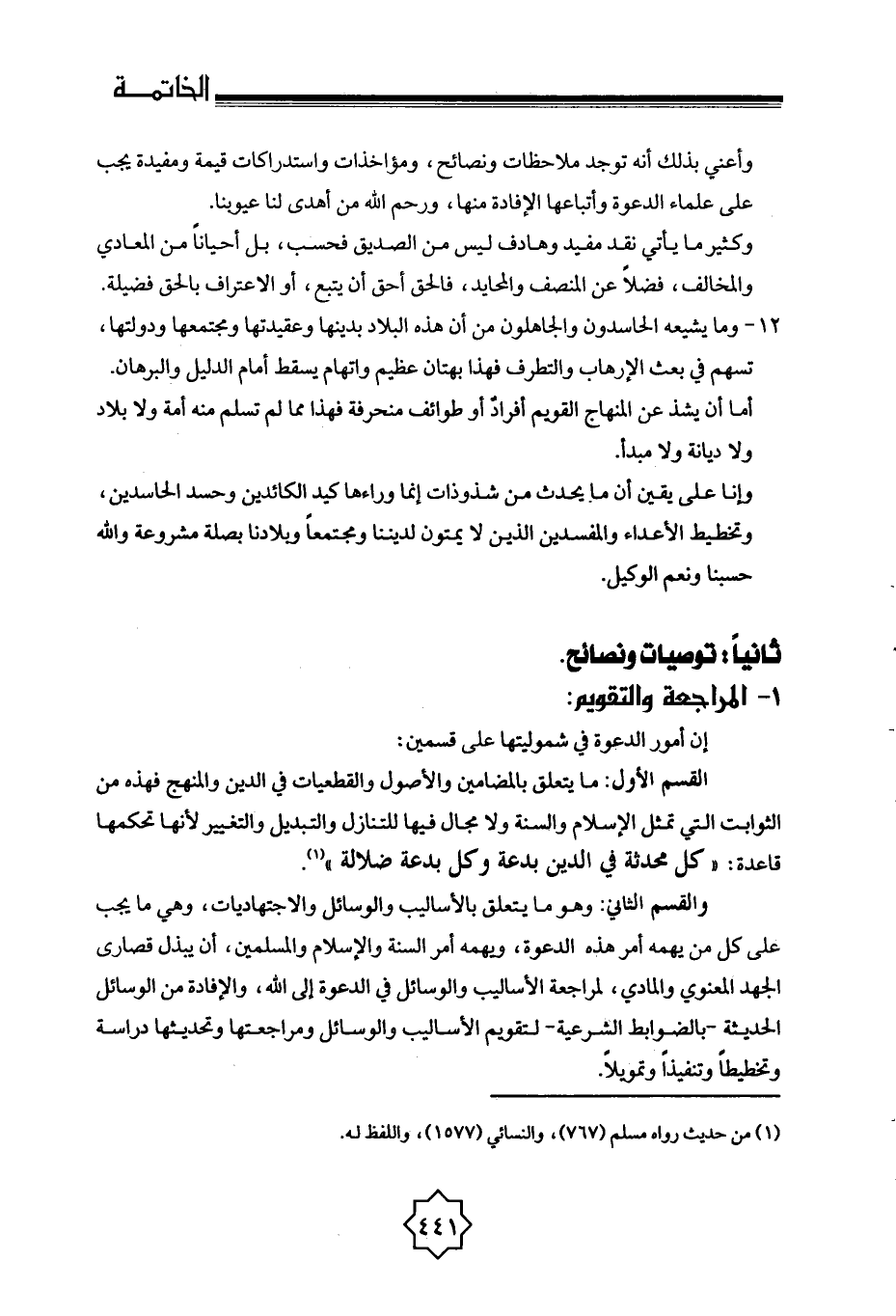 وأعني بذلك أنه توجد ملاحظات ونصائح، ومؤاخذات واستدراكات قيمة ومفيدة يجب على علماء الدعوة وأتباعها الإفادة منها، ورحم الله من أهدى لنا عيوبنا.