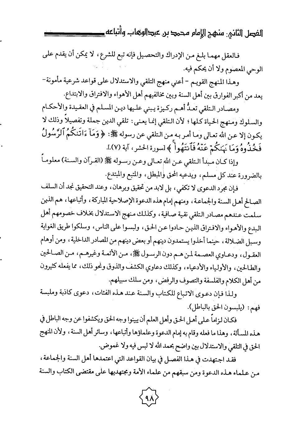 فقد اجتهدت في هذا الفصل في بيان القواعد التي اعتمدها أهل السنة والجماعة، من علماء هذه الدعوة ومن سبقهم من علماء الأمة ومجتهديها على مقتضى الكتاب والسنة