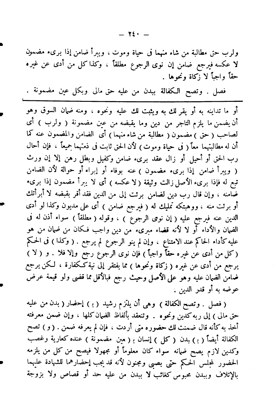 فصل: وتصح الكفالة ببدن من عليه حق مالى وبكل عين مضمونة.