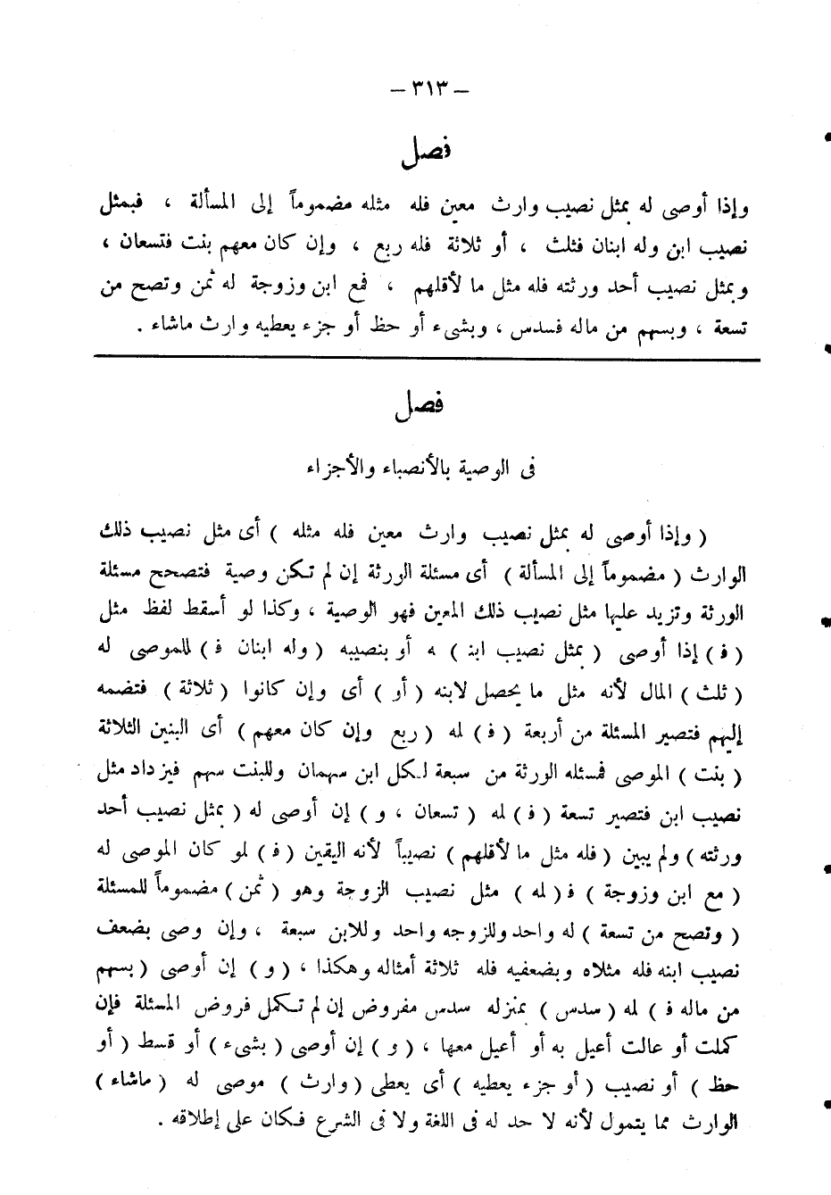 فصل في الوصية بالانصباء والأجزاء