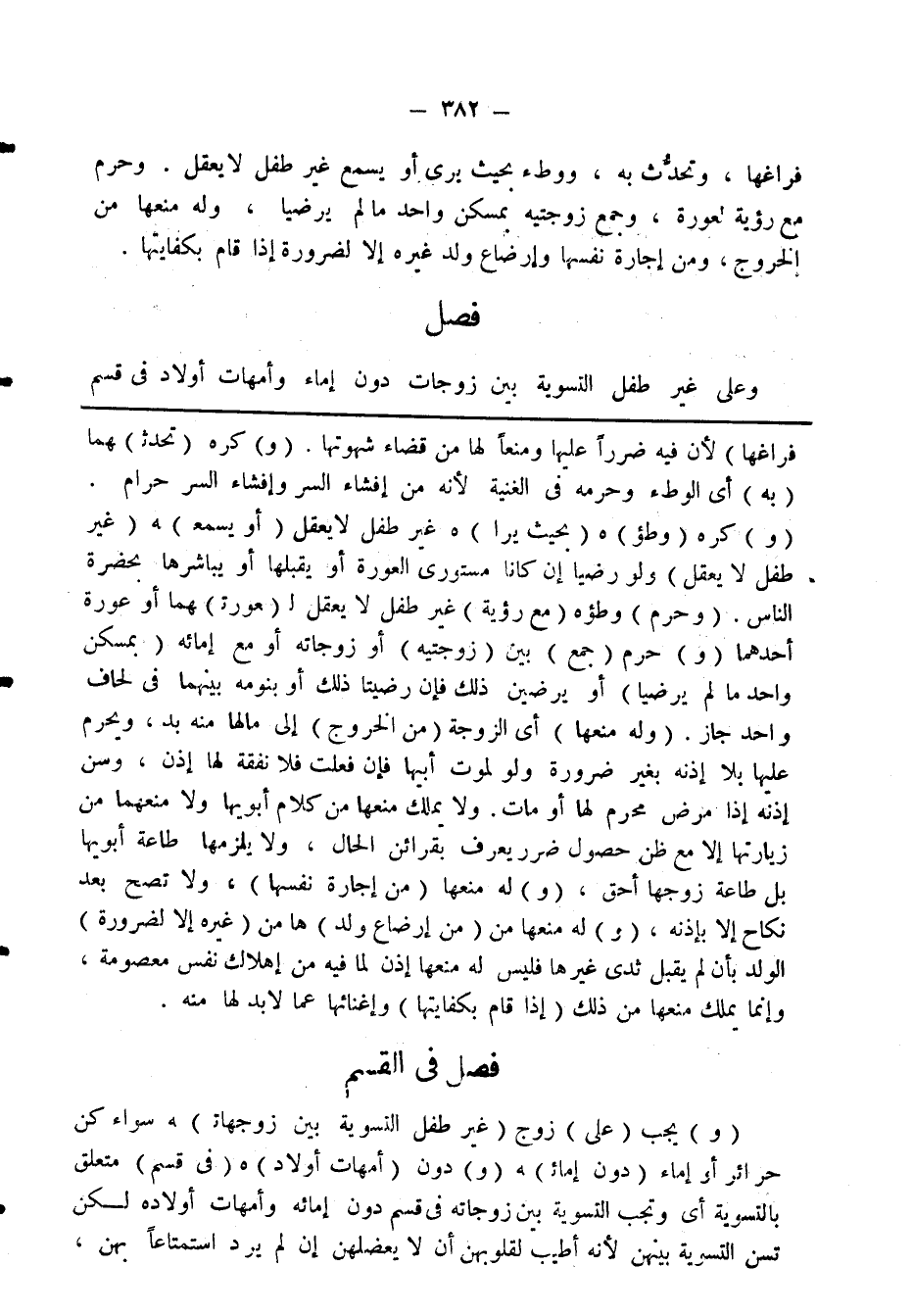 وعلى غير طفل التسوية بين زوجات دون إماء وأمهات أولاد في قسم