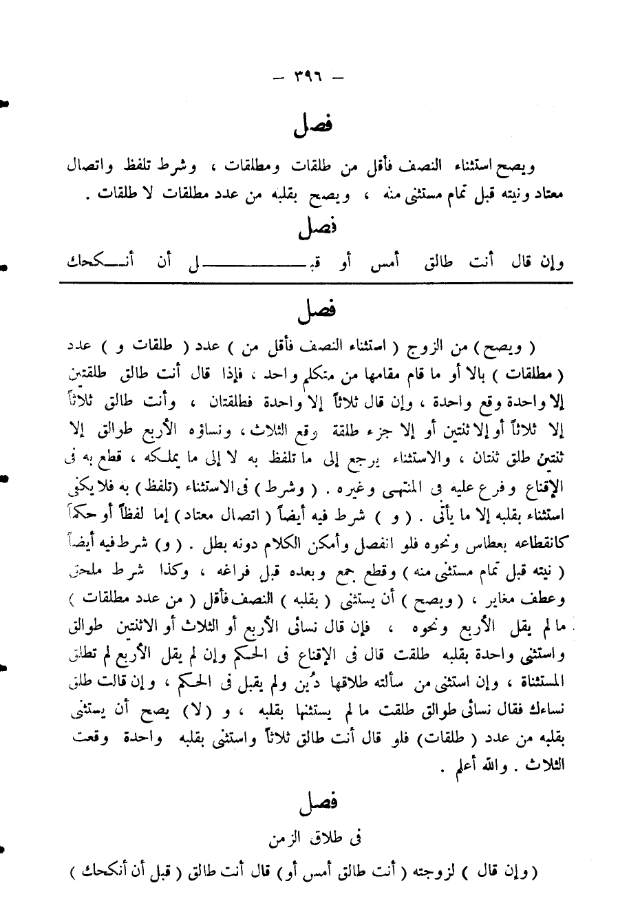 فصل ويصح استثناء النصف فأقل من طلقات ومطلقات، وشرط تلفظ واتصال معتاد ونيته قبل تمام مستثنى منه. ويصح بقلبه من عدد مطلقات لا طلقات