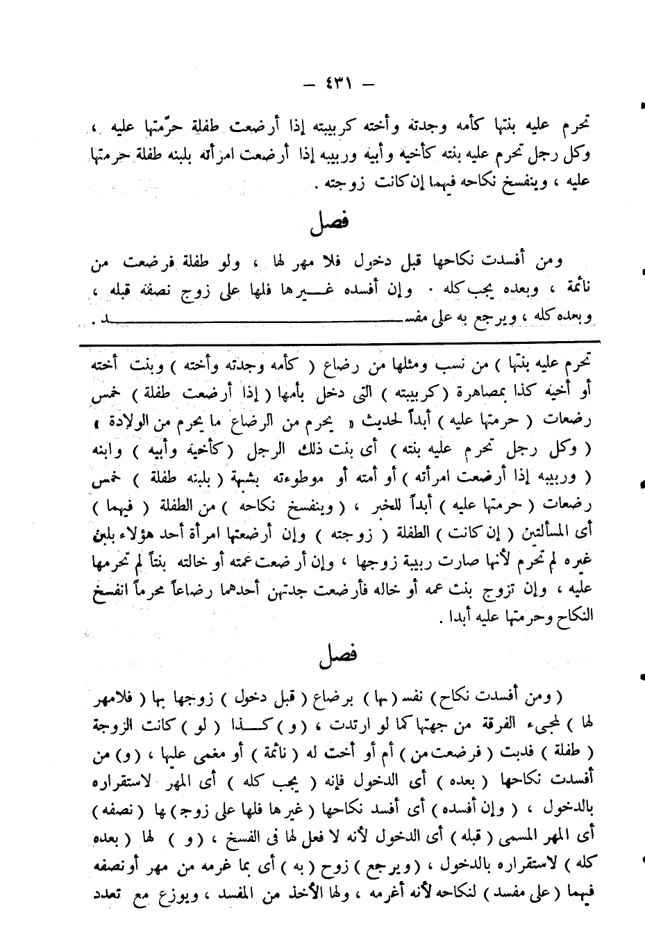 فصل ومن أفسدت نكاحها قبل دخول فلا مهر لها، ولو طفلة فرضعت من نائمة، وبعده يجب كله. وإن أفسده غيرها فلها على زوج نصفه قبله، وبعده كله، ويرجع به على مفسد.