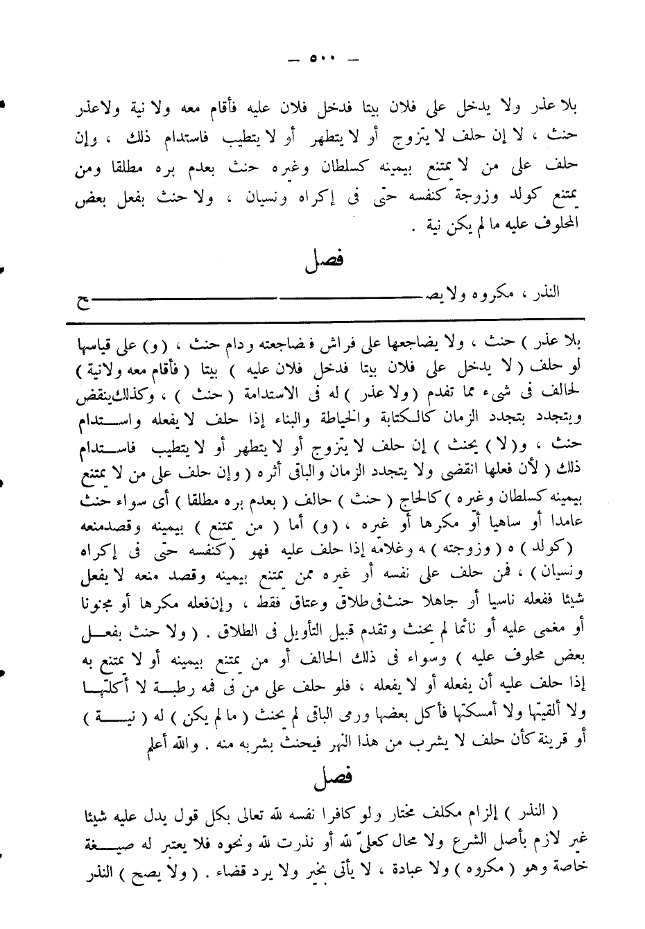 بلا عذر ولا يدخل على فلان بيتا فدخل فلان عليه فأقام معه ولا نية ولا عذر حنث، لا إن حلف لا يتزوج أو لا يتطهر أو لا يتطيب فاستدام ذلك، وإن حلف على من لا يمتنع بيمينه كسلطان وغيره حنث بعدم بره مطلقا ومن يمتنع كولد وزوجة كنفسه حتى في إكراه ونسيان، ولا حنث بفعل بعض المحلوف عليه ما لم يكن نية