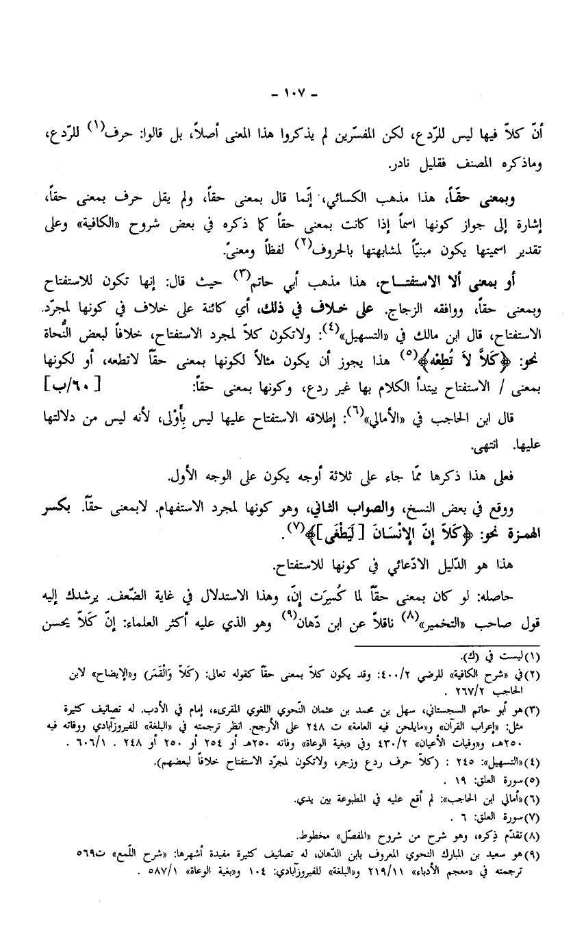 أن كلا فيها ليس للردع، لكن المفسرين لم يذكروا هذا المعنى أصلًا، بل قالوا: حرف للردع، وما ذكره المصنف فقليل نادر.