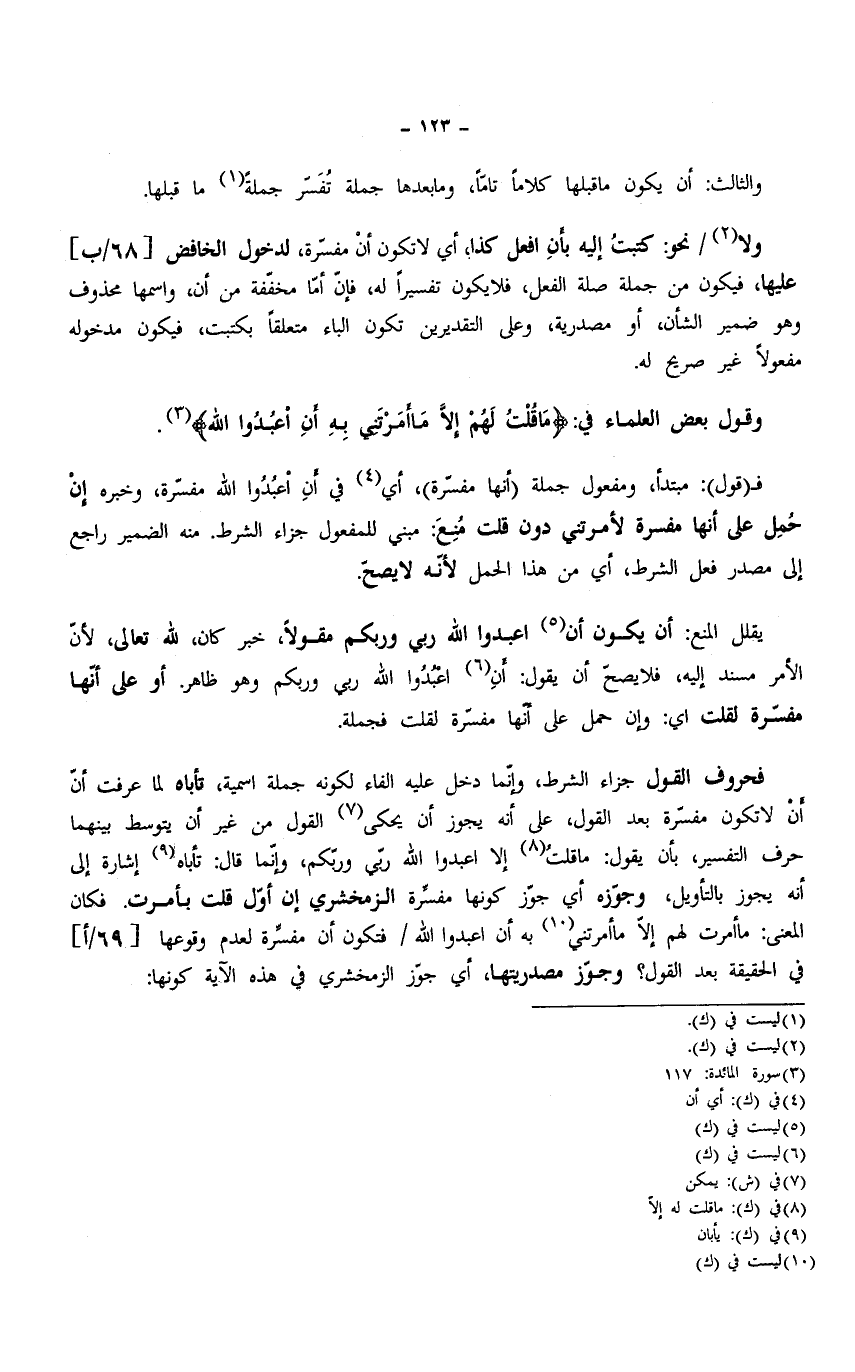 وقول بعض العلماء في: {مَا قُلْتُ لَهُمْ إِلَّا مَا أَمَرْتَنِي بِهِ أَنِ اعْبُدُوا اللَّهَ}.