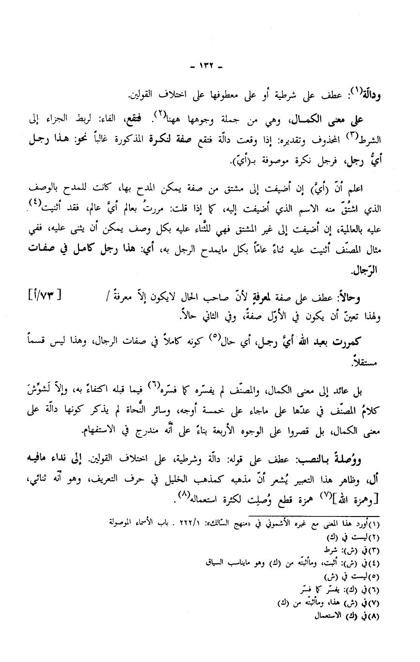 بل عائد إلى معنى الكمال، والمصنف لم يفسره كما فسّره فيما قبله اكتفاءً به، وإلَّا لَشوشَ كلامُ المصنف في عدها على ما جاء على خمسة أوجه، وسائر النحاة لم يذكر كونها دالة على معنى الكمال، بل قصروا على الوجوه الأربعة بناءً على أنه مندرج في الاستفهام.