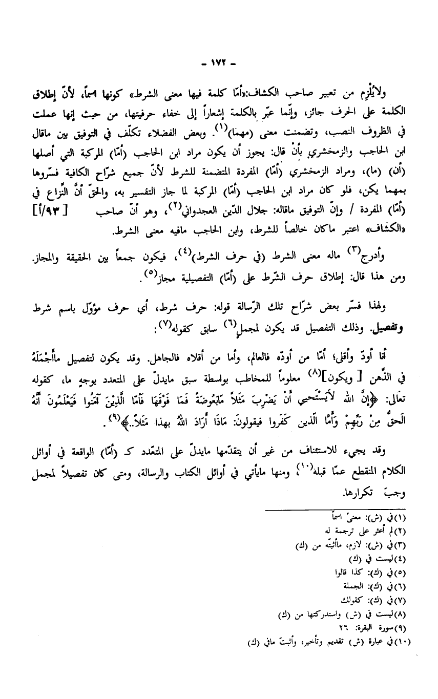 ولهذا فسر بعض شراح تلك الرسالة قوله: حرف شرط، أبي حرف مؤوّل باسم شرط وتفصيل. وذلك التفصيل قد يكون لمجمل سابق كقوله: