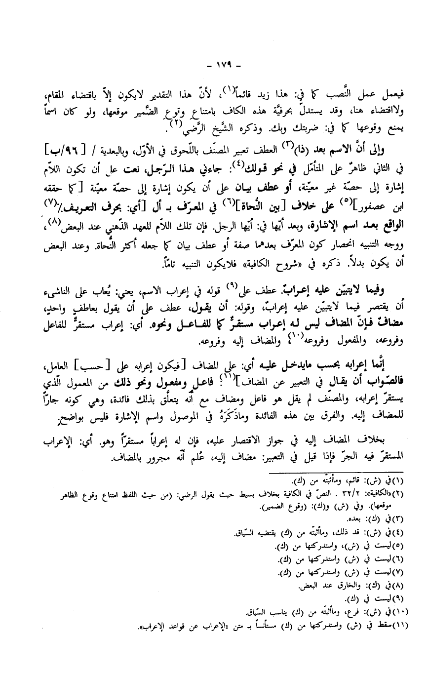 إنَّما إعرابه بحسب ما يدخل عليه أي: على المضاف [فيكون إعرابه على [حسب] العامل، فالصَّواب أن يقال في التعبير عن المضاف]. فاعل ومفعول ونحو ذلك من المعمول الَّذي يستقرّ إعرابه، والمصنّف لم يقل هو فاعل ومضاف مع أنَّه يتعلَّق بذلك فائدة، وهي كونه جارًّا للمضاف إليه. والفرق بين هذه الفائدة وما ذَكَرَهُ في الموصول واسم الإشارة فليس بواضحٍ.