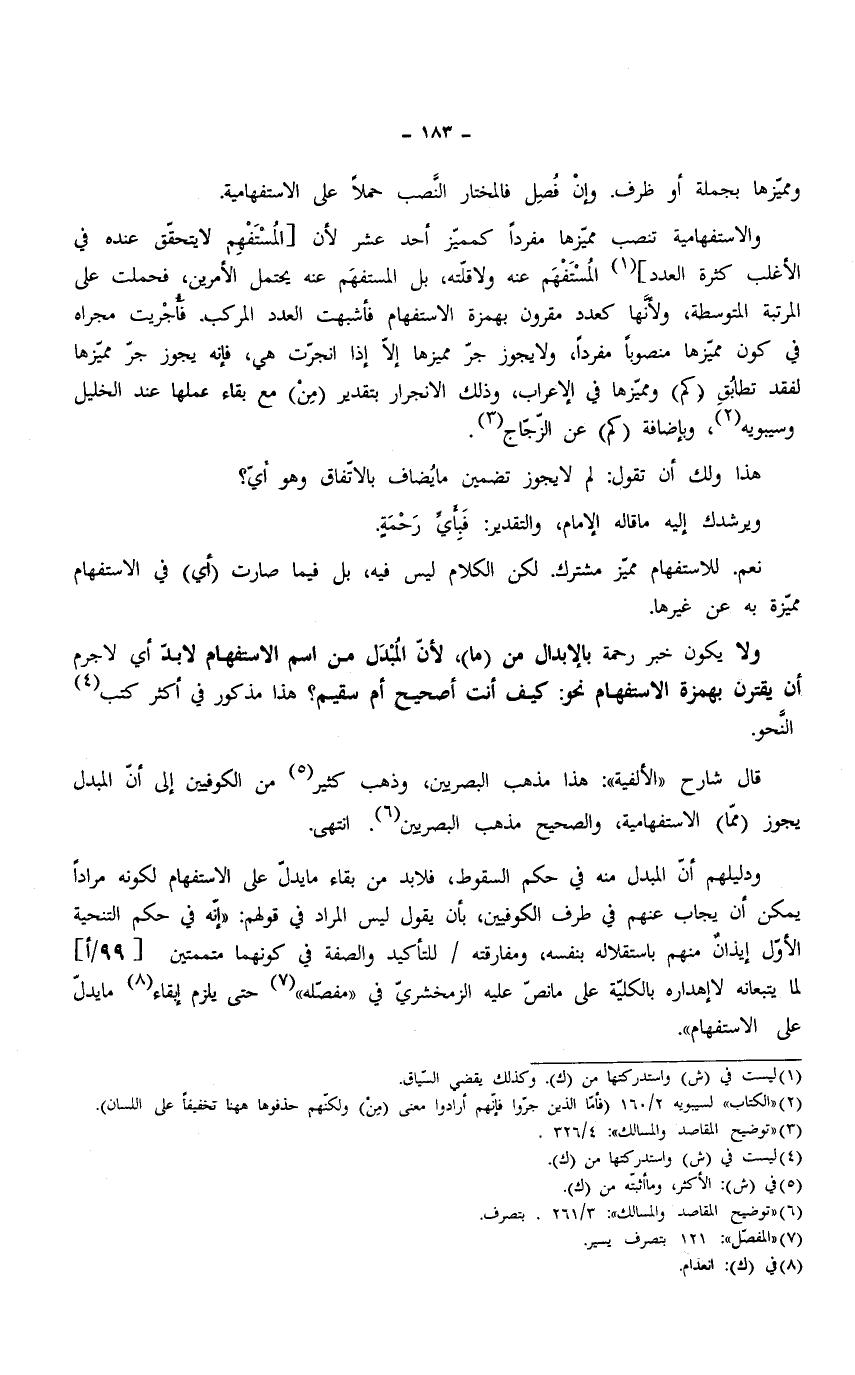 قال شارح "الألفيَّة": هذا مذهب البصريين، وذهب كثير من الكوفيين إلى أنَّ المبدل يجوز (ممَّا) الاستفهامية، والصحيح مذهب البصريين. انتهى.
