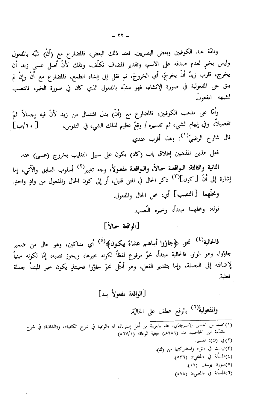 الثانية والثالثة: الواقعة حالًا، والواقعة مفعولًا، وجه تغيير أسلوب السابق والآتي، إما إشارة إلى أنّ [كون] ذكر الحال في المتن قليل، أو إلى كون الحال والمفعول من واد واحدٍ.