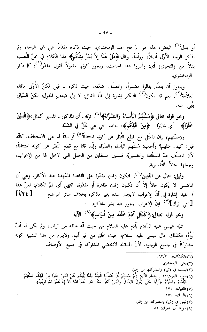 ونحو قوله تعالى: {كَمَثَلِ آدَمَ خَلَقَهُ مِنْ تُرَابٍ} الآية.