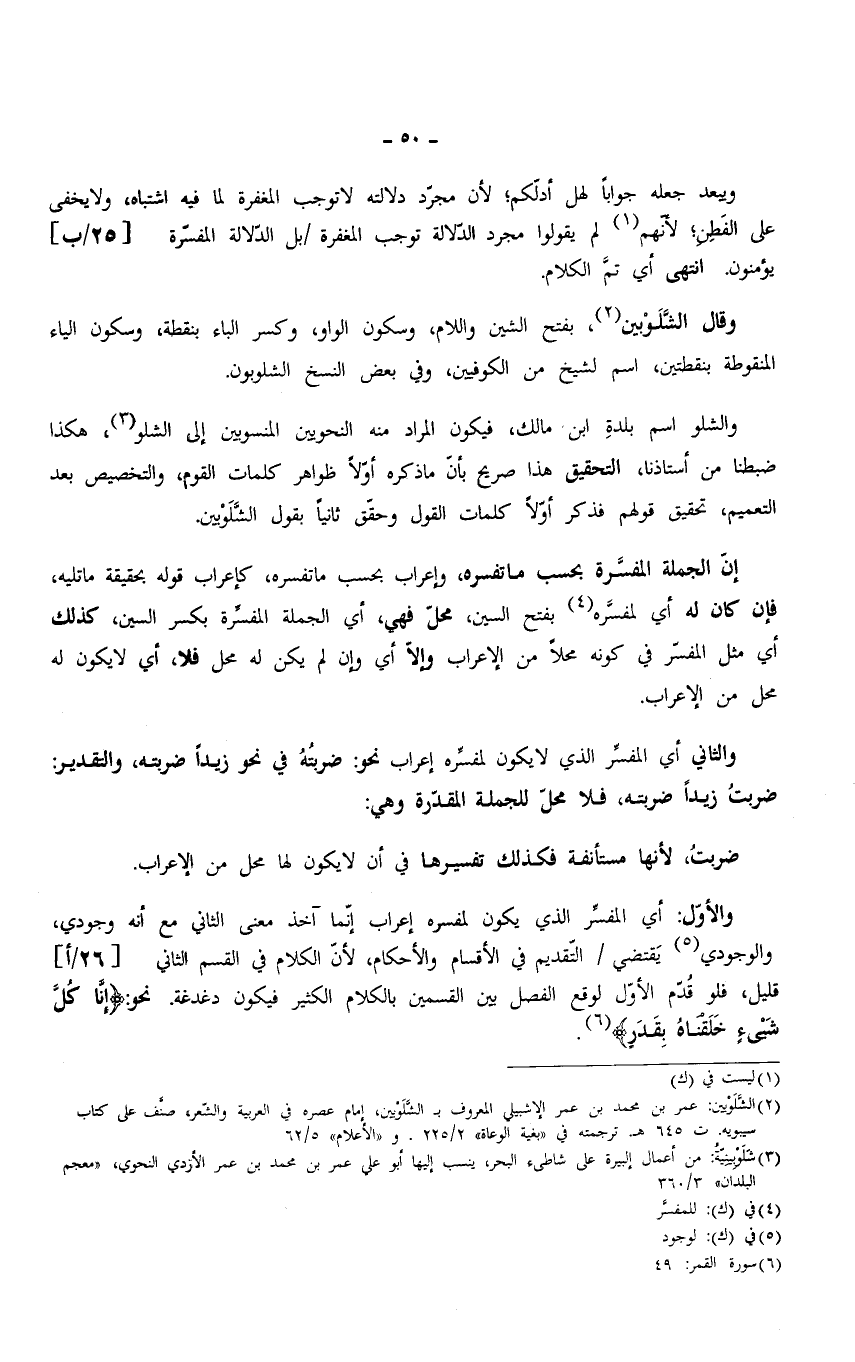 والشلو اسم بلدةِ ابن مالك، فيكون المراد منه النحويين المنسوبين إلى الشلو، هكذا ضبطنا من أستاذنا، التحقيق هذا صريح بأنّ ما ذكره أوّلًا ظواهر كلمات القوم، والتخصيص بعد التعميم، تحقيق قولهم فذكر أوّلًا كلمات القول وحقّق ثانيًا بقول الشَّلَوْبين.