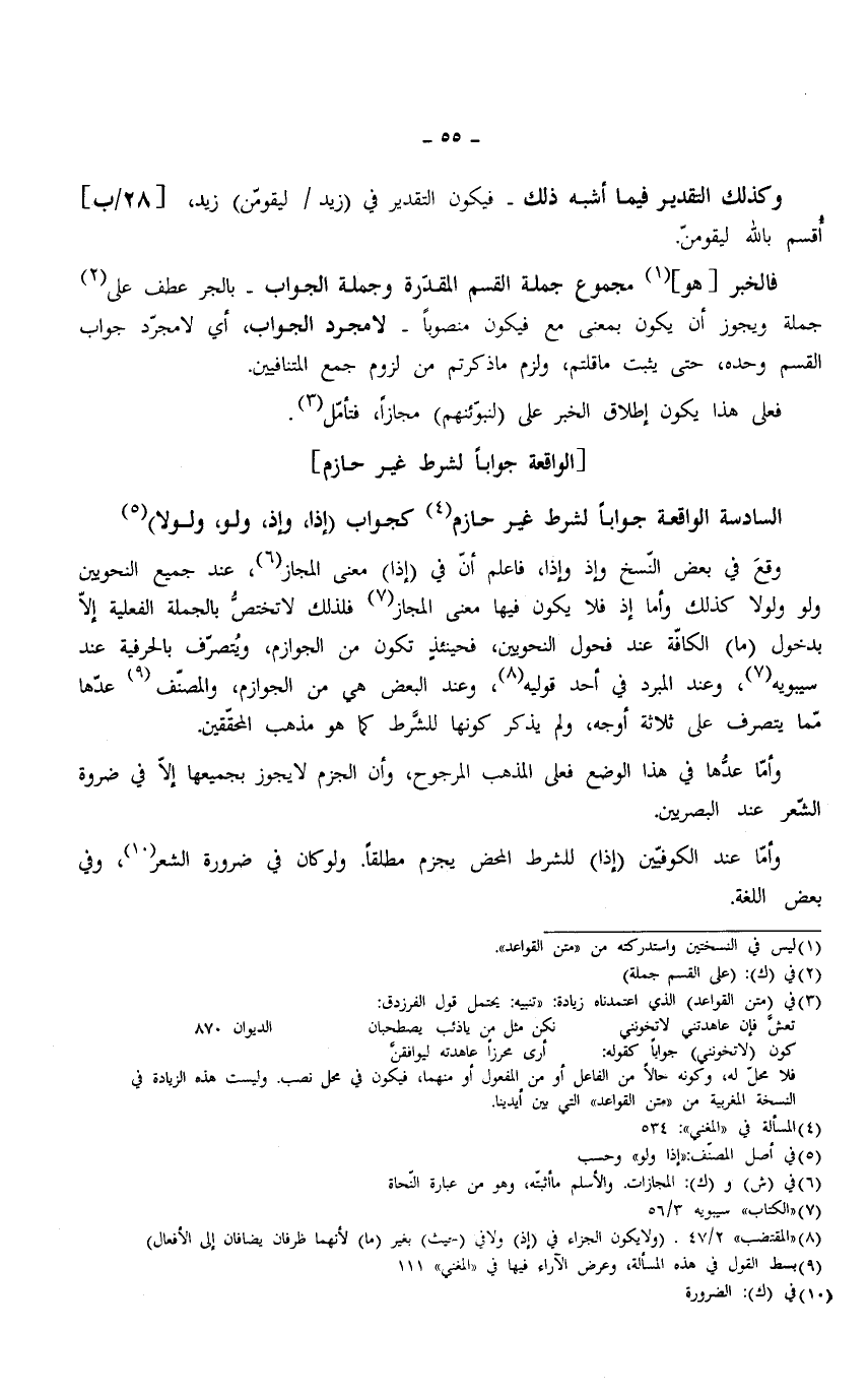 وأمّا عند الكوفيّين (إذا) للشرط المحض يجزم مطلقًا. ولو كان في ضرورة الشعر، وفي بعض اللغة.