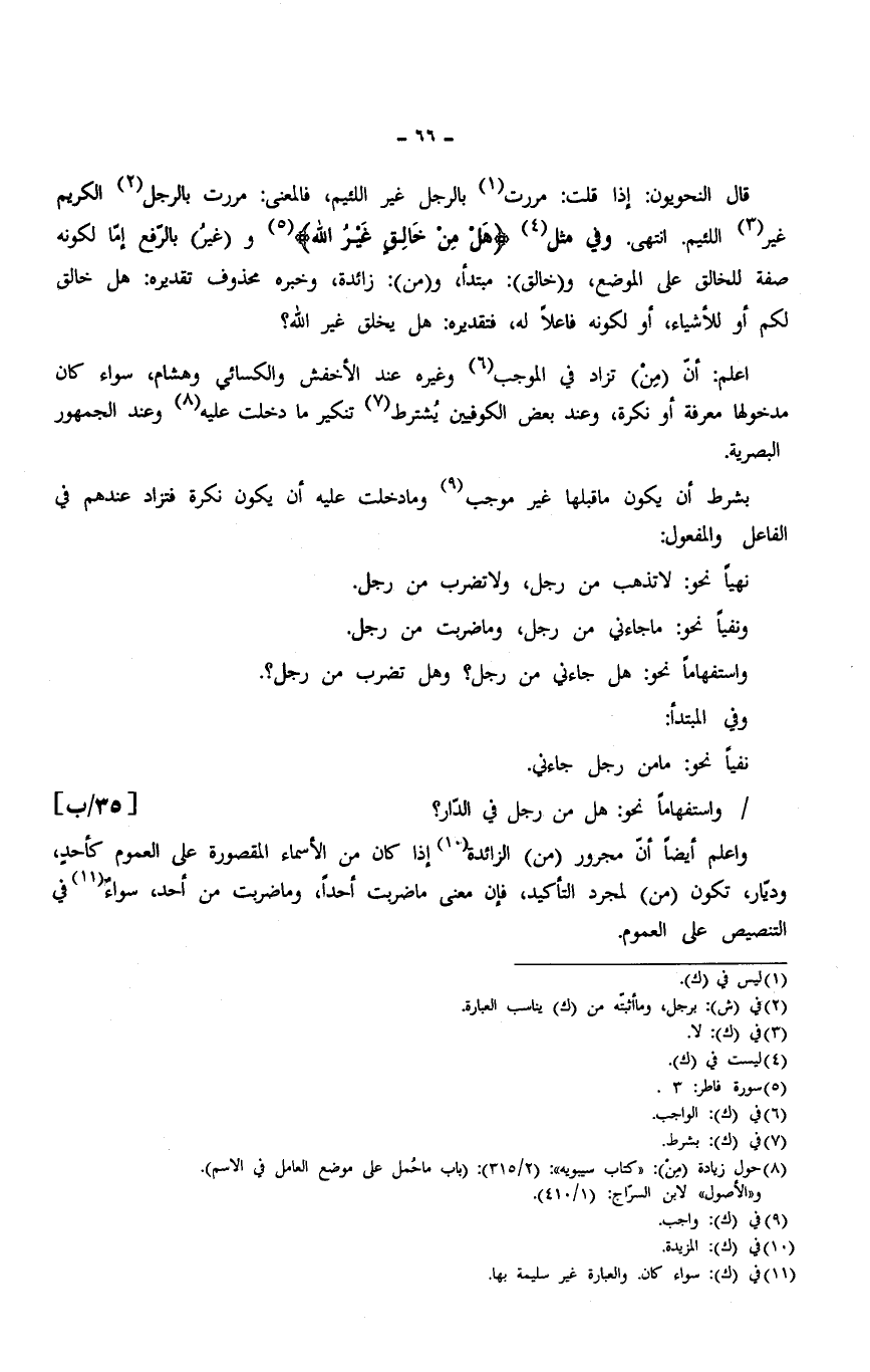 واعلم أيضًا أنّ مجرور (من) الزائدة إذا كان من الأسماء المقصورة على العموم كأحدٍ، وديّار، تكون (من) لمجرد التأكيد، فإن معنى ما ضربت أحدًا، وما ضربت من أحد، سواءٌ في التنصيص على العموم.