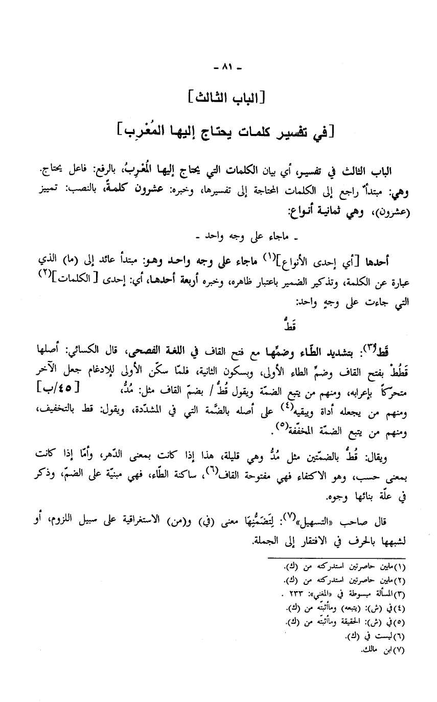 [الباب الثالث] [في تفسير كلمات يحتاج إليها المُعْرِب]
