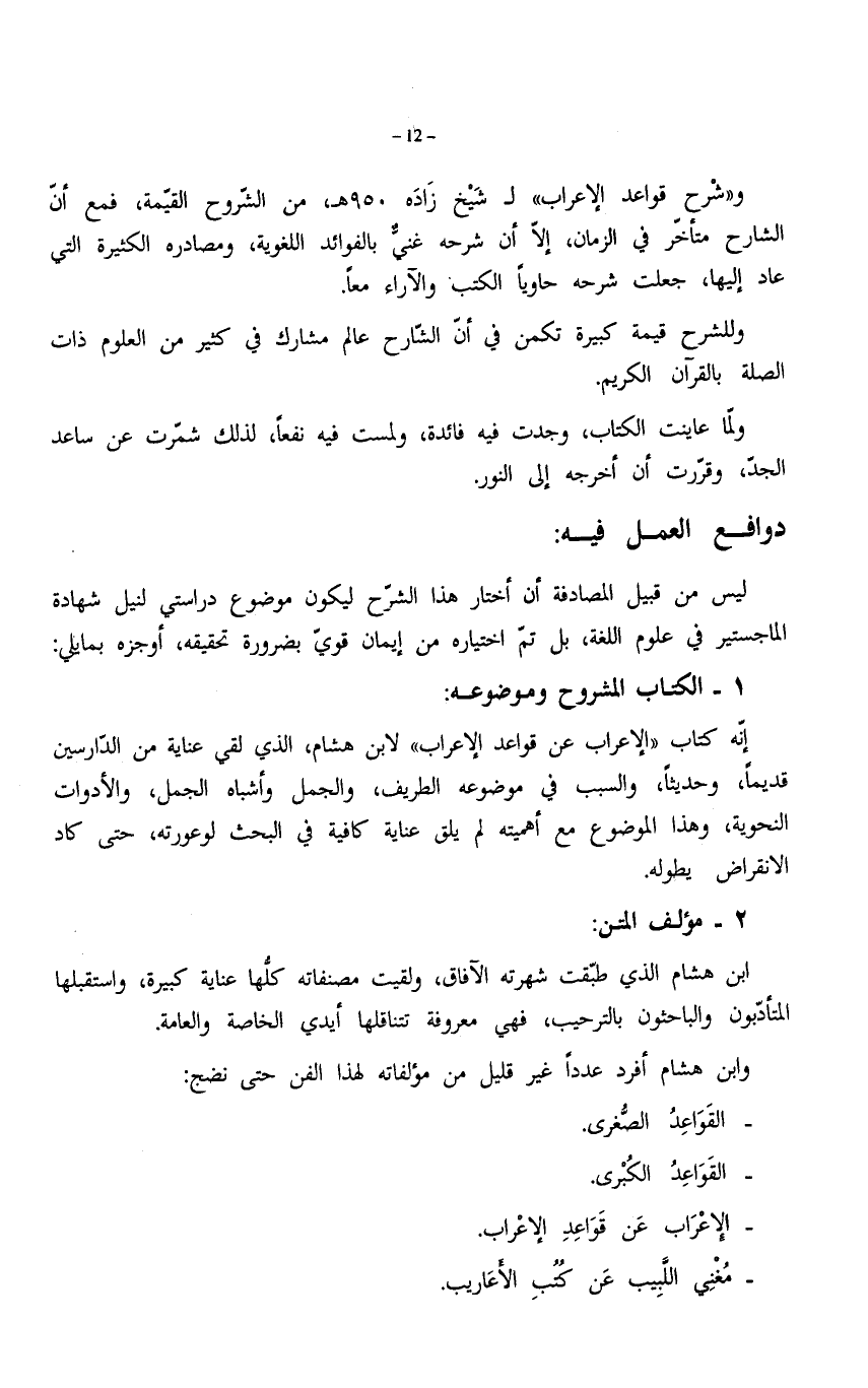 ليس من قبيل المصادفة أن أختار هذا الشرح ليكون موضوع دراستى لنيل شهادة الماجستير في علوم اللغة، بل تمّ اختياره من إيمان قويّ بضرورة تحقيقه، أوجزه بما يلي: