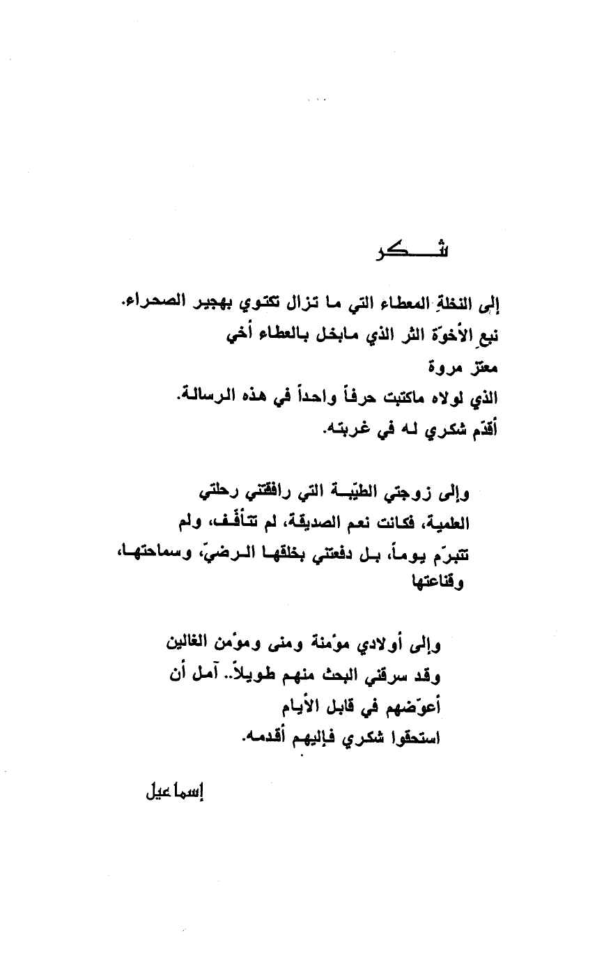 وَإِلَى أَوْلَادِي مُؤمنَة وَمنى وَمُؤمن الغالين وَقد سرقني الْبَحْث مِنْهُم طَويلا .. آمل أَن أعوّضهم فِي قَابل الْأَيَّام.