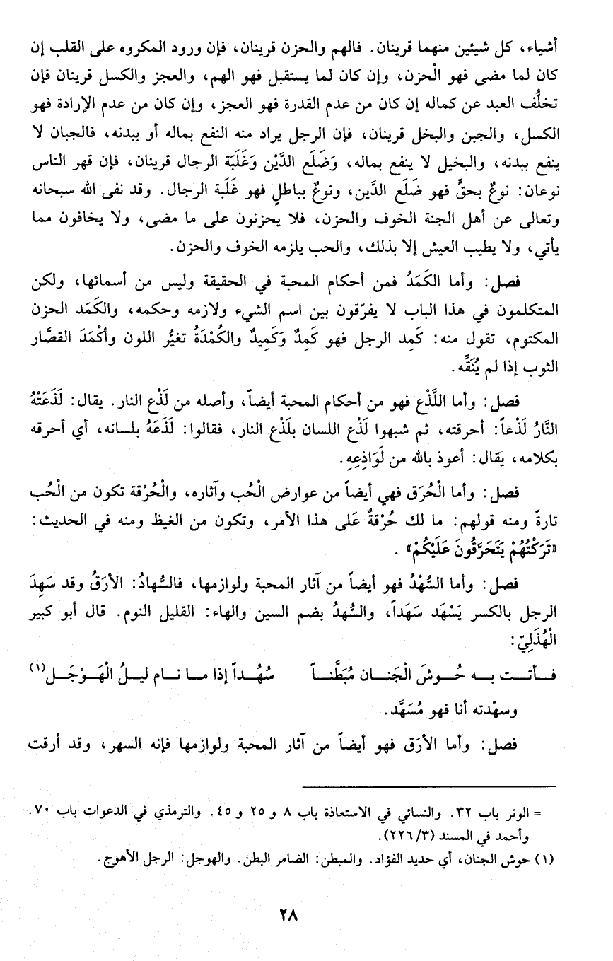 وقال الفراء العشق نبت لزج وسمي العشق الذي يكون من الإنسان للصوقه بالقلب وقال ابن الأعرابي العشقة اللبلابة تخضر وتصفر وتعلق بالذي يليها من الأشجار فاشتق من ذلك العاشق وقد اختلف الناس هل يطلق هذا الاسم في حق الله تعالى فقالت طائفة من الصوفية لا بأس بإطلاقه وذكروا فيه أثرا لا يثبت وفيه فإذا فعل ذلك عشقني وعشقته وقال جمهور الناس لا يطلق ذلك في حقه سبحانه وتعالى فلا يقال إنه يعشق ولا يقال عشقه عبده ثم اختلفوا في سبب المنع على ثلاثة أقوال أحدها عدم التوقيف بخلاف المحبة الثاني أن العشق إفراط المحبة ولا يمكن ذلك في حق الرب تعالى فإن الله تعالى لا يوصف بالإفراط في الشيء ولا يبلغ عبده ما يستحقه من حبه فضلا أن يقال أفرط في حبه الثالث أنه مأخوذ من التغير