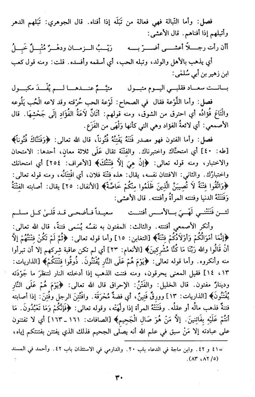 فصل وأما الشوق فهو سفر القلب إلى المحبوب وقد وقع هذا الاسم في السنة ففي المسند من حديث عمار بن ياسر أنه صلى صلاة فأوجز فيها فقيل له أوجزت يا أبا اليقظان فقال لقد دعوت فيها بدعوات سمعتهن من رسول الله صلى الله عليه وسلم يدعو بهن اللهم بعلمك الغيب وقدرتك على الخلق أحيني إذا كانت الحياة خيرا لي وتوفني إذا كانت الوفاة خيرا لي وأسألك خشيتك في الغيب والشهادة وأسألك كلمة الحق في الغضب والرضا وأسألك القصد في الفقر والغنى وأسألك نعيما لا ينفد وأسألك قرة عين لا تنقطع وأسألك الرضا بعد القضاء وأسألك برد العيش بعد الموت وأسألك لذة النظر إلى وجهك والشوق إلى لقائك في غير ضراء مضرة ولا فتنة مضلة اللهم زينا بزينة الإيمان واجعلنا هداة مهتدين وجاء في أثر إسرائيلي طال شوق الأبرار إلى لقائي وأنا إلى لقائهم أشوق وقد قال الله تعالى {مَنْ كَانَ يَرْجُو لِقَاءَ اللَّهِ فَإِنَّ أَجَلَ اللَّهِ لآتٍ} قال بعض العارفين