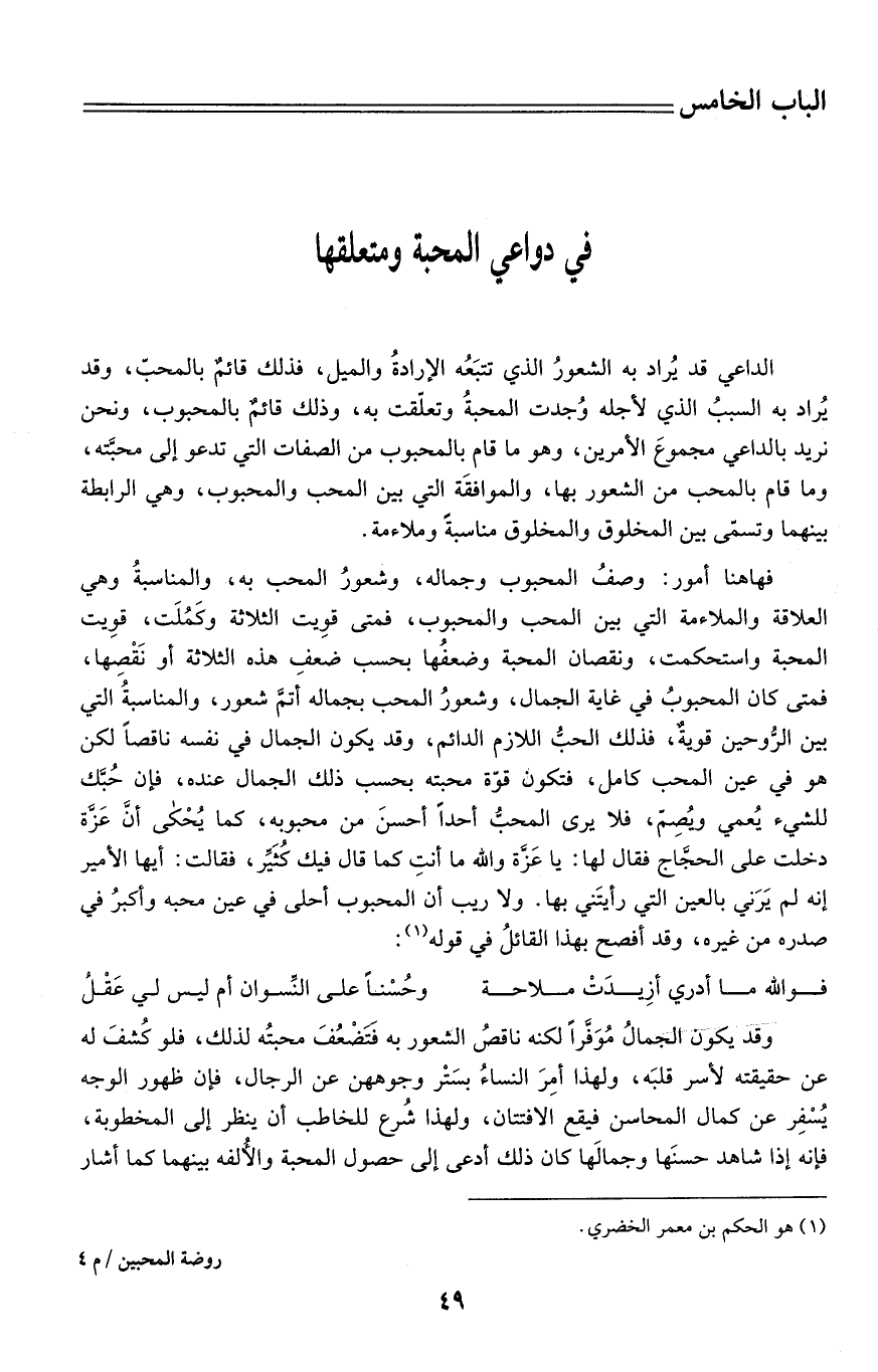 وقد ظن بعض من لا علم عنده أن الحبيب أفضل من الخليل وقال محمد حبيب الله وإبراهيم خليل الله وهذا باطل من وجوه كثيرة منها إن الخلة خاصة والمحبة عامة فإن الله يحب التوابين ويحب المتطهرين وقال في عباده المؤمنين {يُحِبُّهُمْ وَيُحِبُّونَهُ} ومنها أن النبي صلى الله عليه وسلم نفى أن يكون له من أهل الأرض خليل وأخبر أن أحب النساء إليه عائشة ومن الرجال أبوها ومنها أنه قال إن الله اتخذني وخليلا كما اتخذ إبراهيم خليلا ومنها أنه قال لو كنت متخذا من أهل الأرض خليلا لاتخذت أبا بكر خليلا ولكن أخوة الإسلام ومودته