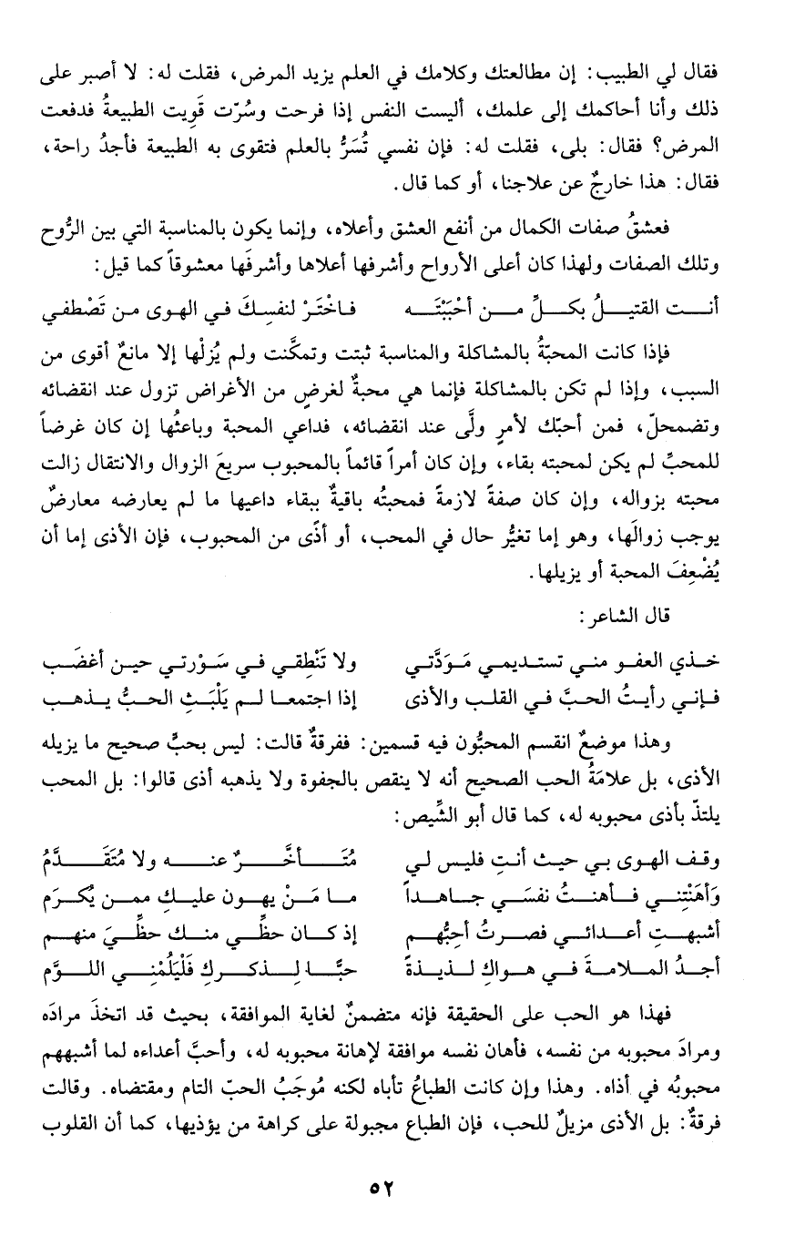 وأما التعبد فهو غاية الحب وغاية الذل يقال عبده الحب أي ذلله وطريق معبد بالأقدام أي مذلل وكذلك المحب قد ذلله الحب ووطأه ولا تصلح هذه المرتبة لأحد غير الله عز وجل ولا يغفر الله سبحانه لمن أشرك به في عبادته ويغفر ما دون ذلك لمن شاء فمحبة العبودية هي أشرف أنواع المحبة وهي خالص حق الله على عباده وفي الصحيح عن معاذ أنه قال كنت سائرا مع رسول الله صلى الله عليه وسلم فقال يا معاذ فقلت لبيك يا رسول الله صلى الله عليه وسلم وسعديك قال ثم سار ساعة ثم قال يا معاذ قلت لبيك رسول الله صلى الله عليه وسلم وسعديك ثم سار ساعة فقال يا معاذ قلت لبيك رسول الله صلى الله عليه وسلم وسعديك قال أتدري ما حق الله على عباده قلت الله ورسوله أعلم قال حقه عليهم أن يعبدوه لا يشركوا به شيئا أتدري ما حق العباد على الله إذا