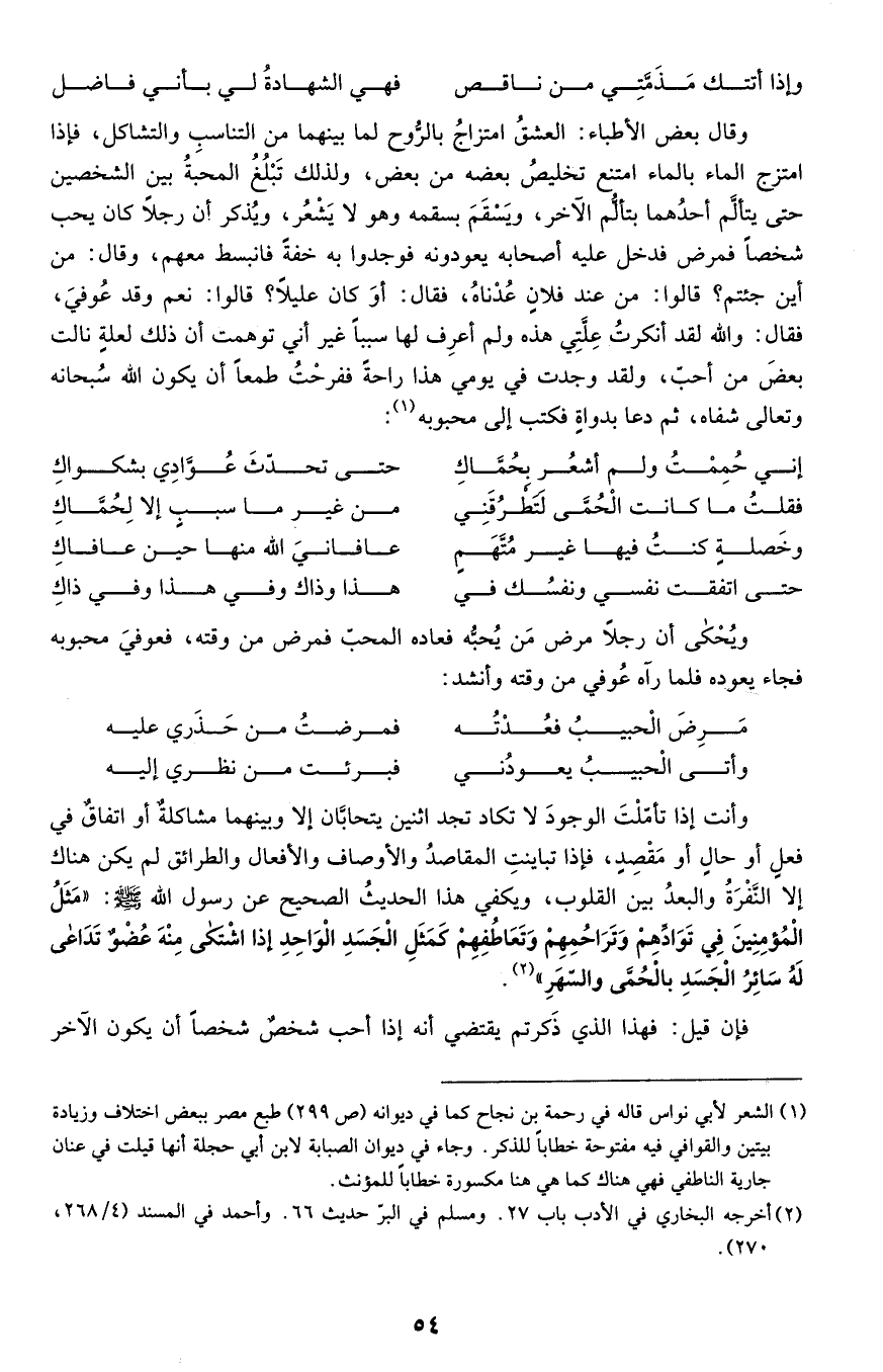 فالأسماء الدالة على مسمى واحد نوعان أحدهما أن يدل عليه باعتبار الذات فقط فهذا النوع هو المترادف ترادفا محضا وهذا كالحنطة والقمح والبر والإسم والكنية واللقب إذا لم يكن فيه مدح ولا ذم وإنما أتي به لمجرد التعريف والنوع الثاني أن يدل على ذات واحده باعتبار تباين صفاتها كأسماء الرب تعالى وأسماء كلامه وأسماء نبيه وأسماء اليوم الآخر فهذا النوع مترادف بالنسبة إلى الذات متباين بالنسبة إلى الصفات فالرب والرحمن والعزيز والقدير والملك يدل على ذات واحدة باعتبار صفات متعددة وكذلك البشير والنذير الحاشر والعاقب والماحي وكذلك يوم القيامة ويوم البعث ويوم الجمع ويوم التغابن ويوم الآزفة ونحوها وكذلك القرآن والفرقان والكتاب والهدى ونحوها وكذلك أسماء السيف فإن تعددها بحسب أوصاف وإضافات مختلفة كالمهند والعضب الصارم ونحوها وقد عرفت تباين الأوصاف في أسماء المحبة وقد أنكر كثير من الناس الترادف في اللغة وكأنهم أرادوا هذا المعنى وأنه ما من إسمين لمسمى واحد إلا وبينهما فرق في صفة أو نسبة أو إضافة سواء علمت لنا أو لم تعلم وهذا الذي قالوه صحيح باعتبار الواضع الواحد ولكن قد يقع الترادف باعتبار واضعين مختلفين بسمى أحدهما المسمى باسم ويسميه الواضع الآخر باسم غيره ويشتهر الوضعان عند القبيلة الواحدة وهذا كثير ومن ههنا يقع الاشتراك أيضا فالأصل في اللغة هو التباين وهو أكثر اللغة والله أعلم