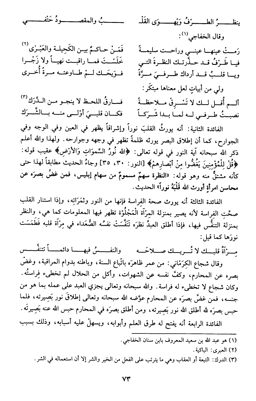 كانت تدخل على قريش فتضحكهم فقدمت المدينة فنزلت على امرأة تضحك الناس فقال النبي صلى الله عليه وسلم على من نزلت فلانة فالت على فلانة المضحكة فقال الأرواح جنود مجندة فما تعارف منها ائتلف وما تناكر منها اختلف وأصل الحديث في الصحيح وذكر لبقراط رجل من أهل النقص يحبه فاغتم لذلك وقال ما أحبني إلا وقد وافقته في بعض أخلاقه وأخذا المتنبي هذا المعنى فقلبه وأجاد فقال