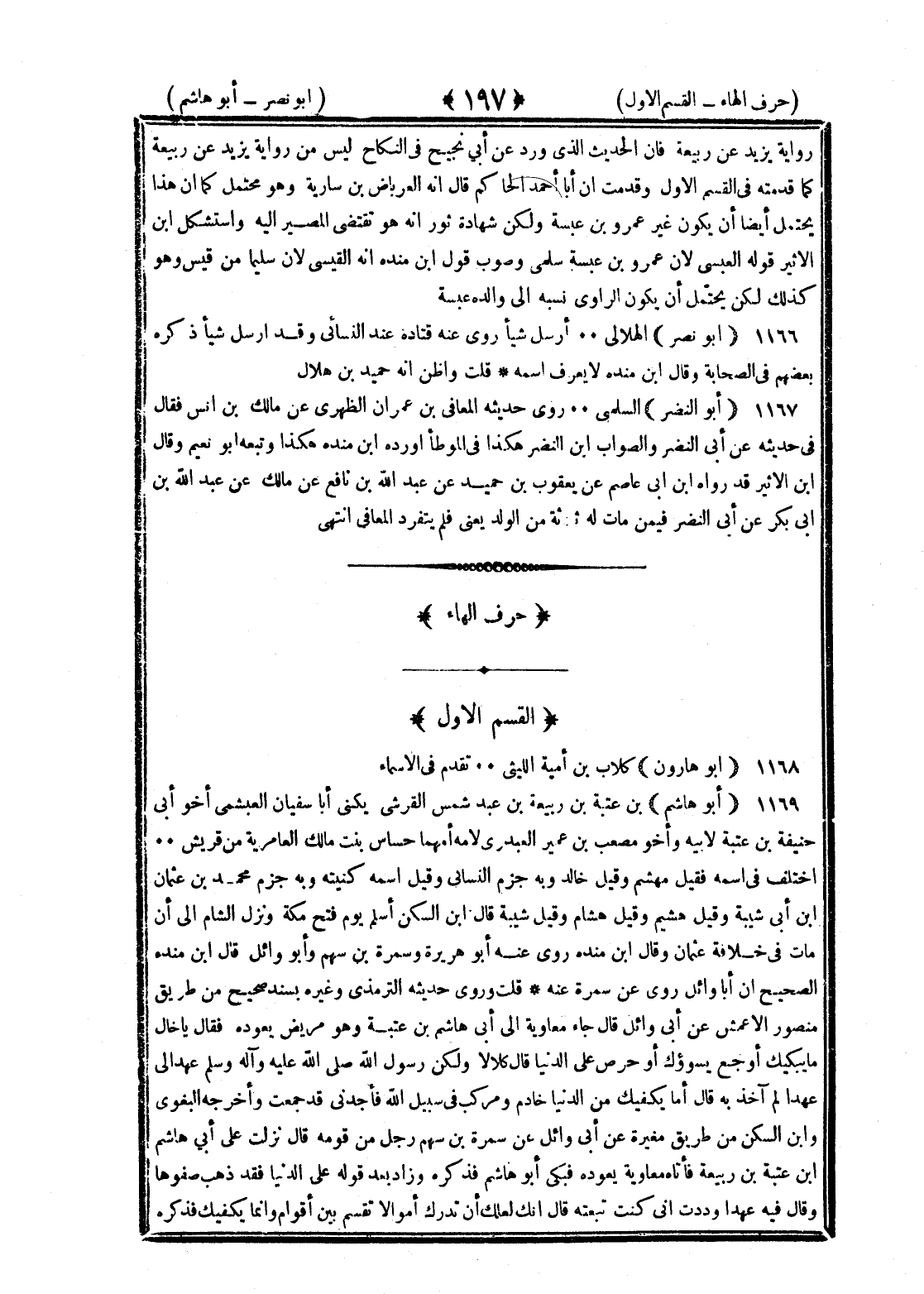 <197> رواية يزيد عن ربيعة فإن الحديث الذي ورد عن أبي نجيح في النكاح ليس من رواة يزيد عن ربيعة كما قدمته في القسم الأول وقدمت أن أبا احمد الحاكم قال إنه العرباض بن سارية وهو محتمل كما أن هذا يحتمل أيضا أن يكون غير عمرو بن عبسة ولكن شهادة ثور أنه هو تقتضي المصير اليه واستشكل بن الأثير قوله العبسي لأن عمرو بن عبسة سلمي وصوب قول بن منده أنه قيسي لأن سليما من قيس وهو كذلك لكن يحتمل أن الراوي نسبه الى والده عبسة ويكون أبو نصر الهلالي أرسل شيئا روى عنه قتادة عند النسائي وقد أرسل شيئا ذكره بعضهم في الصحابة وقال بن منده لا يعرف اسمه قلت وأظن أنه حميد بن هلال أبو النضر السلمي روى حديثه المعافى بن عمران الظهري عن مالك بن أنس فقال في حديثه عن أبي النضر والصواب بن النضر هكذا في الموطأ أورده بن منده هكذا وتبعه أبو نعيم وقال بن الأثير قد رواه بن أبي عاصم عن يعقوب بن حميد عن عبد الله بن نافع عن مالك عن عبد الله بن أبي بكر عن أبي النضر فيمن مات له ثلاثة من الولد يعني فلم يتفرد المعافى انتهى وأبو النضر هذا هو