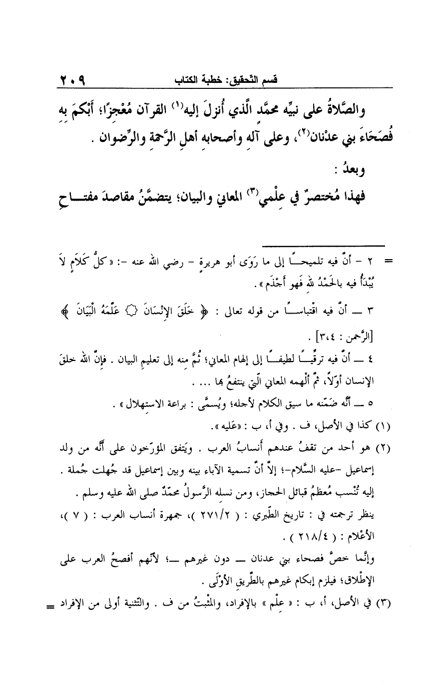 فهذا مُختصرٌ في عِلْمي (¬3) المعاني والبيان؛ يتضمَّن مقاصدَ مفتاح