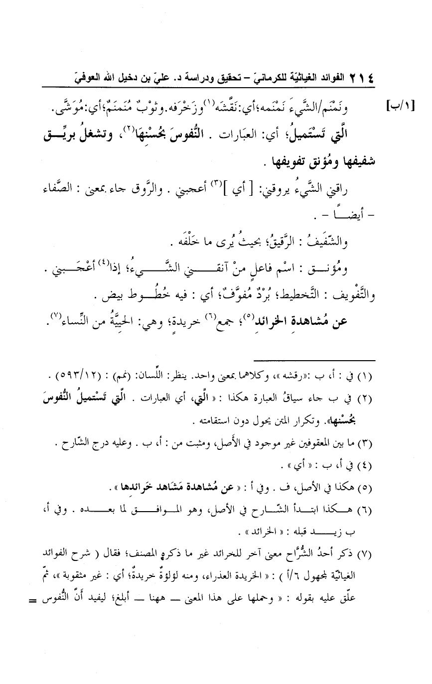 (¬2) في ب جاء سياقُ العبارة هكذا: "التي" أي العبارات. التي تَسْتميلُ النُّفوسَ بحُسنها. وتكرار المتن يحول دون استقامته.