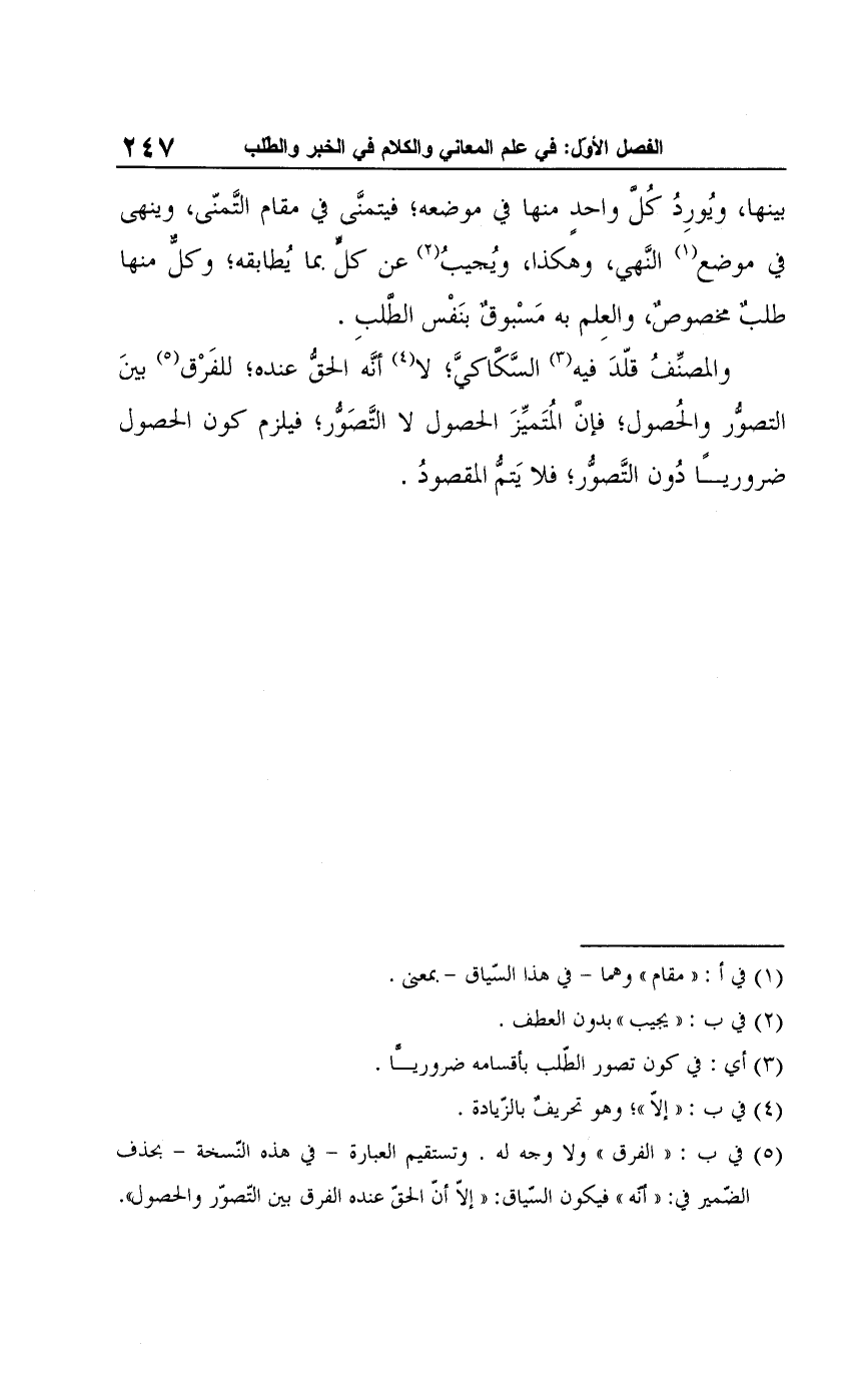 (¬5) في ب: "الفرق" ولا وجه له. وتستقيم العبارة -في هذه النّسخة- بحذف الضمير في: "أنه" فيكون السياق: "إلّا أنّ الحقّ عنده الفرق بين التّصور والحصول".