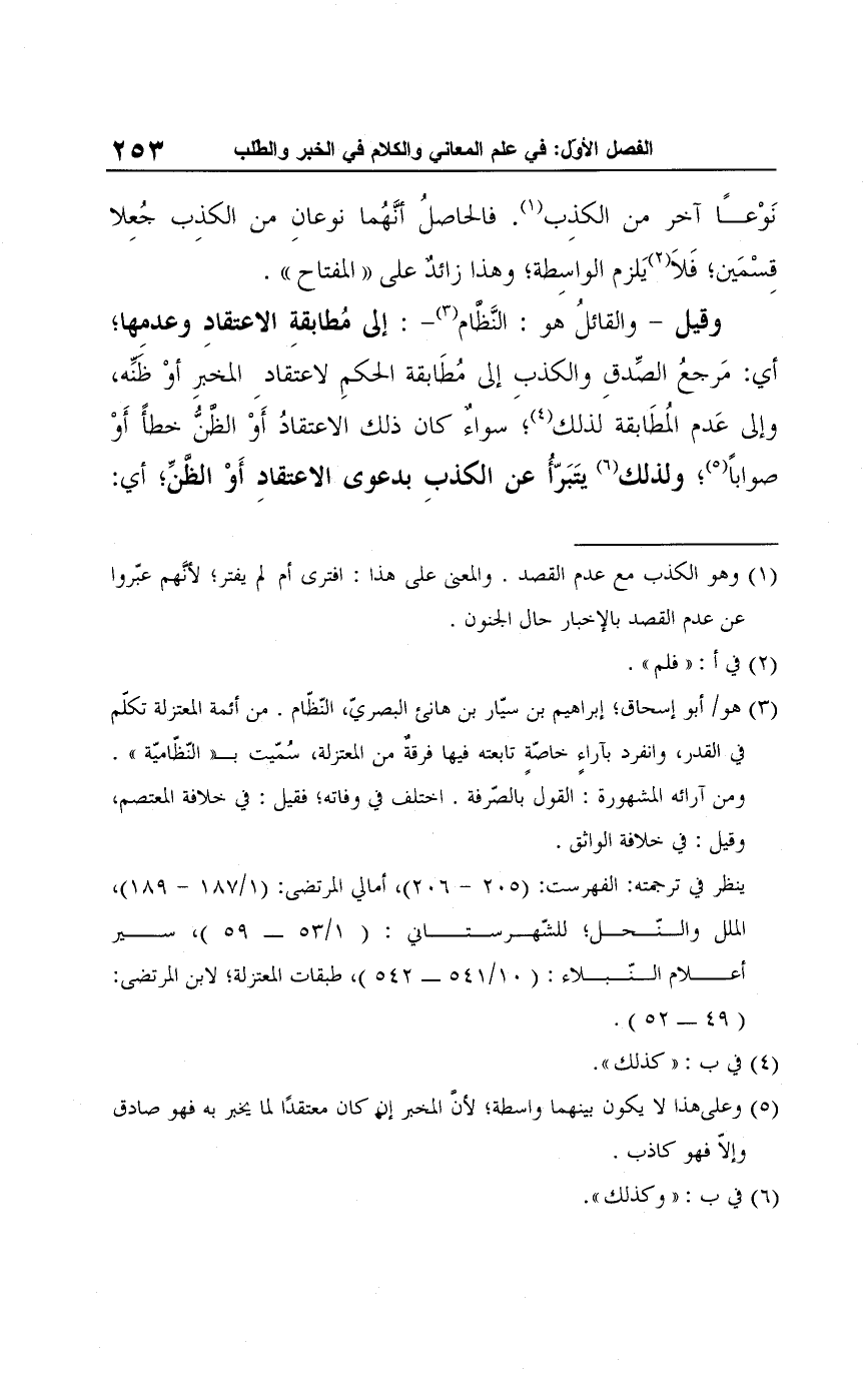 (¬3) هو أبو إسحاق؛ إبراهيم بن سيّار بن هانئ البصريّ، النّظّام. من أئمة المعتزلة تكلّم في القدر، وانفرد بآراءٍ خاصّةٍ تابعته فيها فرقةٌ من المعتزلة، سُمّيت بـ"النّظّاميّة".