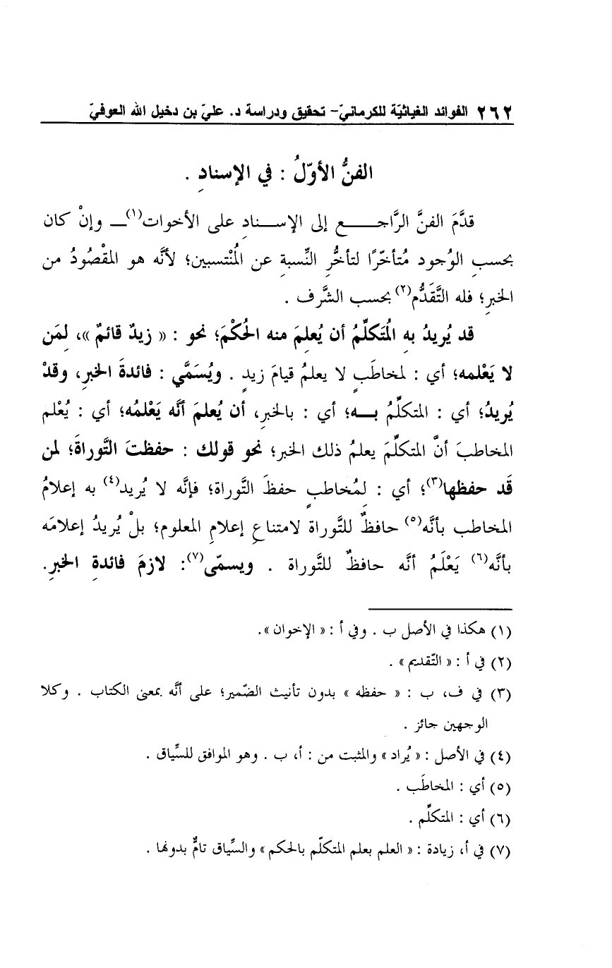 الفنُّ الأوّلُ: في الإسنادِ: