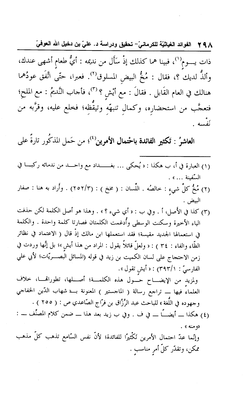 ولمزيدٍ من الإيضاح حول هذه الكلمة؛ أصلها، تطوراتها، خلاف العلماء فيها -تراجع رسالة (الماجستير) المعنونة بـ "شهاب الدّين الخفاجي وجهوده في اللُّغة" للباحث عبد الرَّزَّاق بن فرّاج الصّاعدي ص: (255).